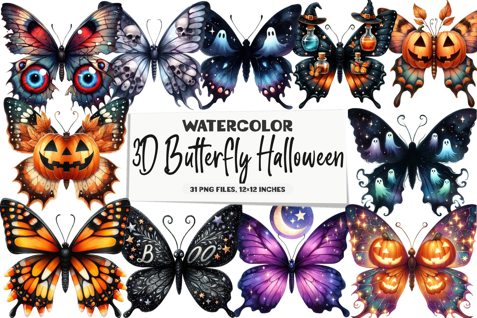 3D Butterfly Halloween Clipart Bundle