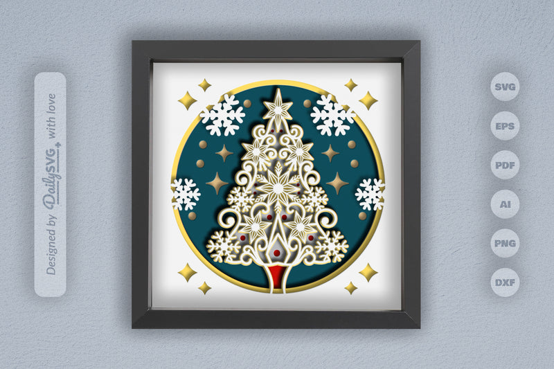3D Christmas Snowflake Tree Papercut SVG Bundle