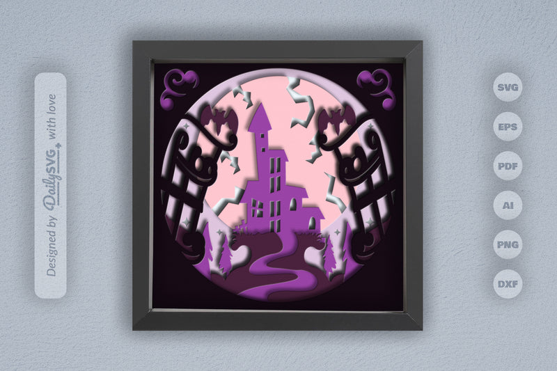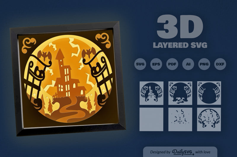 Unleash the spookiness with our 3D Halloween Haunted Castle Papercut SVG Bundle. Perfect for crafting eerie decorations, this bundle features intricate haunted castle designs, ideal for Halloween parties and haunted house themes.