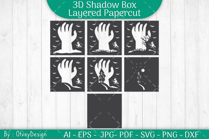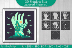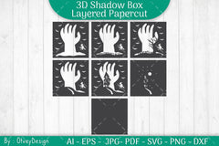 3D Halloween Scene Hand Shadow Box SVG Bundle