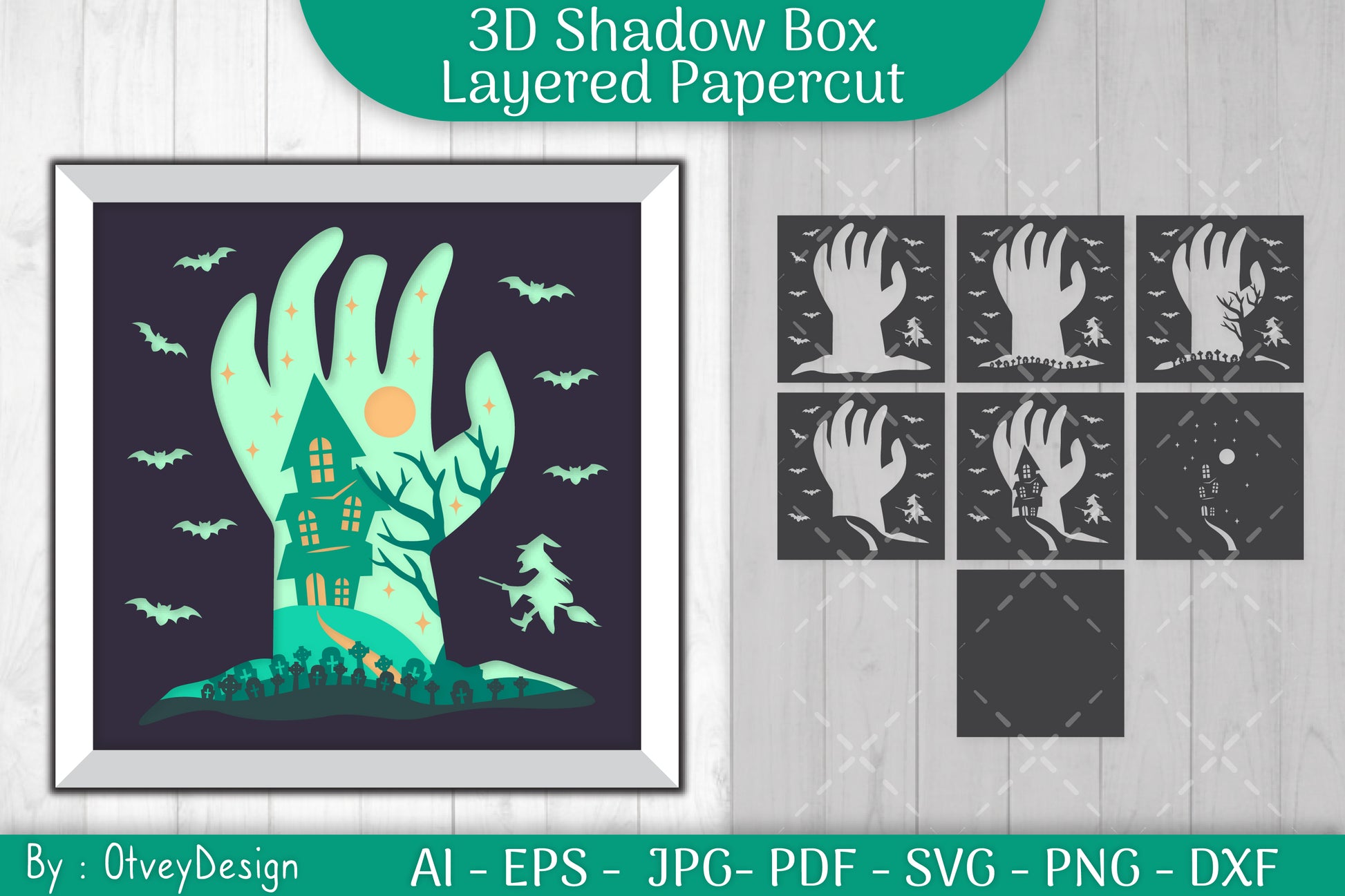 Unleash your creativity with the 3D Halloween Scene Hand Shadow Box SVG Bundle. Perfect for crafting spooky, intricate designs, this bundle is ideal for Halloween decorations and DIY projects. Transform your space with layered shadow boxes featuring ghosts, pumpkins, and haunted houses. Easy to use and perfect for crafters of all levels.
