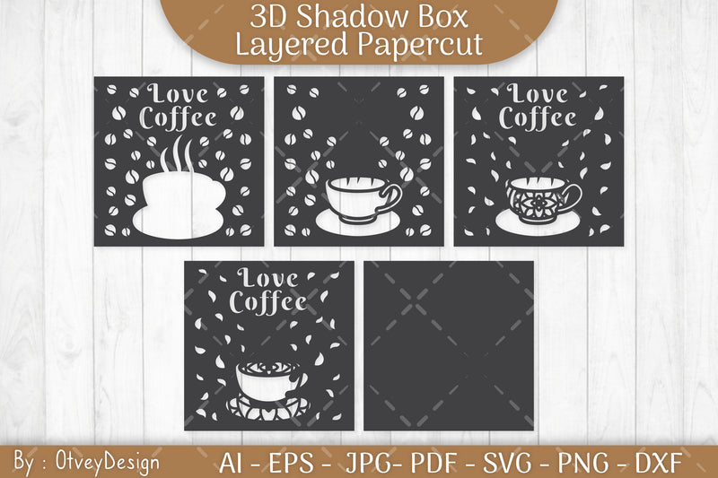 3D Shadow Box Love Coffee Layered SVG Bundle