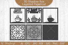 3D Shadow Box Love Coffee Layered SVG Bundle