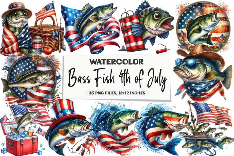 Celebrate Independence Day with our 4th of July Bass Fish Clipart Bundle, featuring vibrant and patriotic designs perfect for crafting, scrapbooking, and digital projects. Dive into creativity with high-quality, easy-to-use images that capture the spirit of the holiday. Ideal for DIY enthusiasts and professional designers alike, this bundle offers endless possibilities for festive decorations and personalized gifts. Make your projects stand out with unique, eye-catching bass fish illustrations that embody the essence of American pride. Perfect for adding a splash of color and patriotism to any creative endeavor.