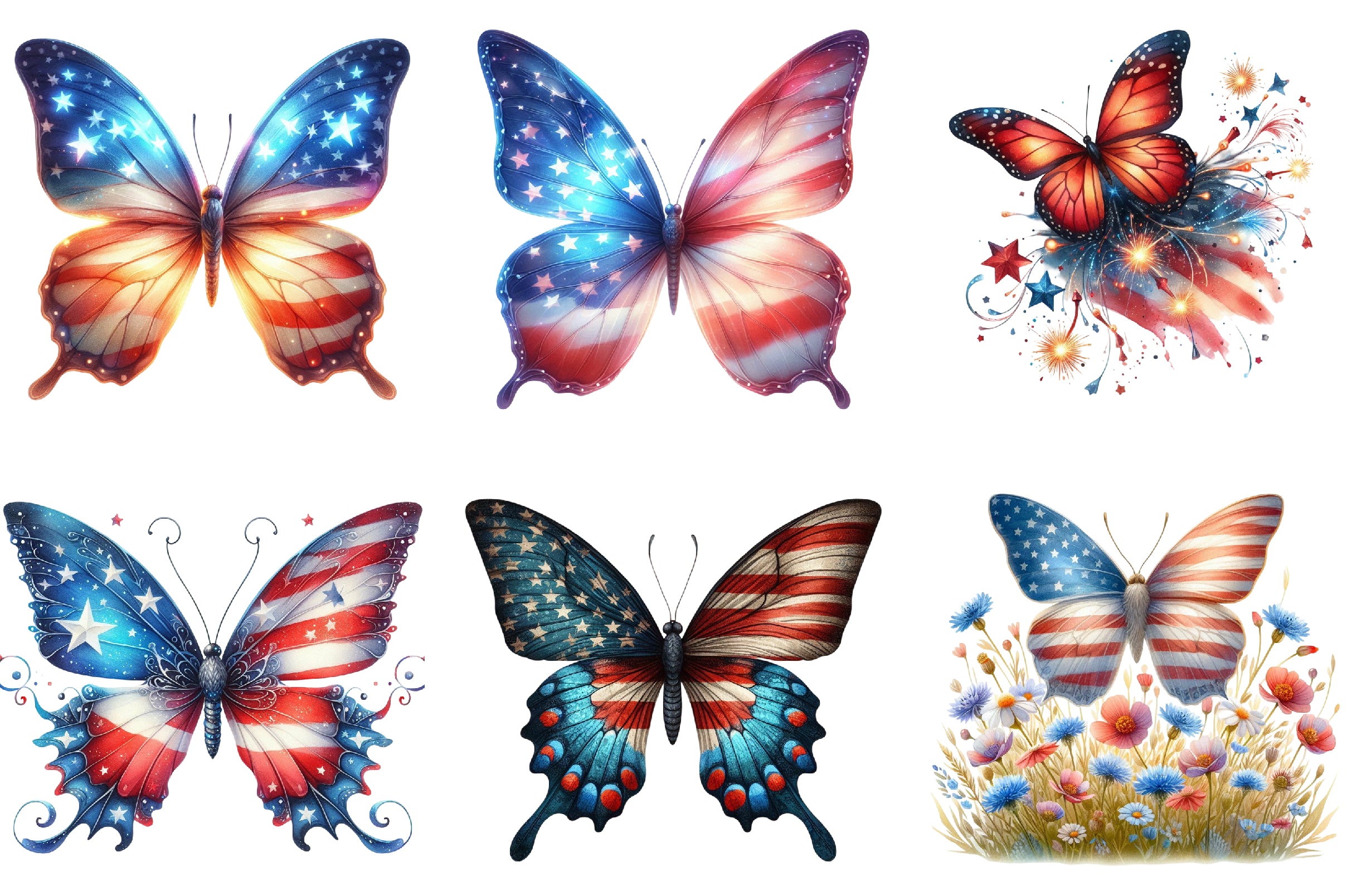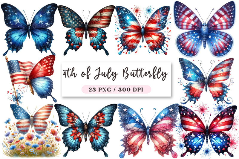4th of July Butterfly Clipart Bundle