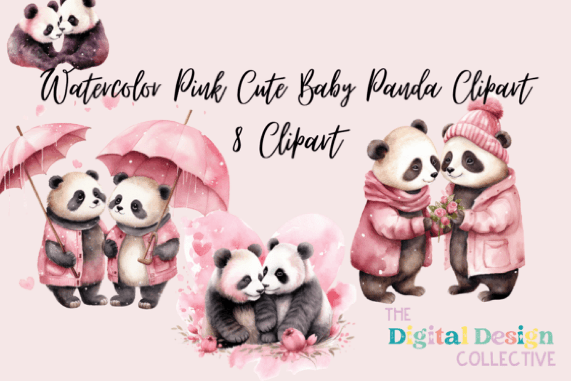 Adorable Pink Baby Panda Clipart Bundle