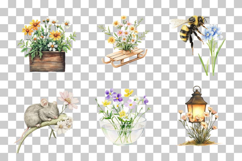 Bring your springtime visions to life with high-quality, versatile clipart that adds a touch of whimsy to any project.
