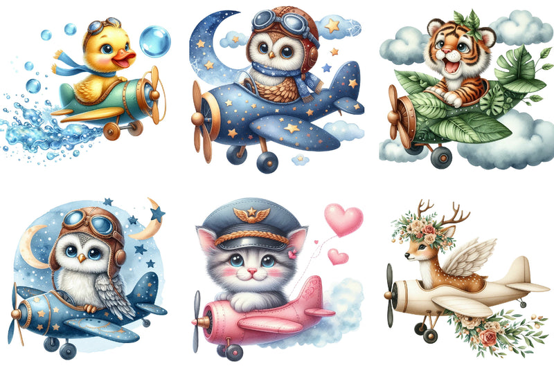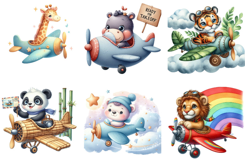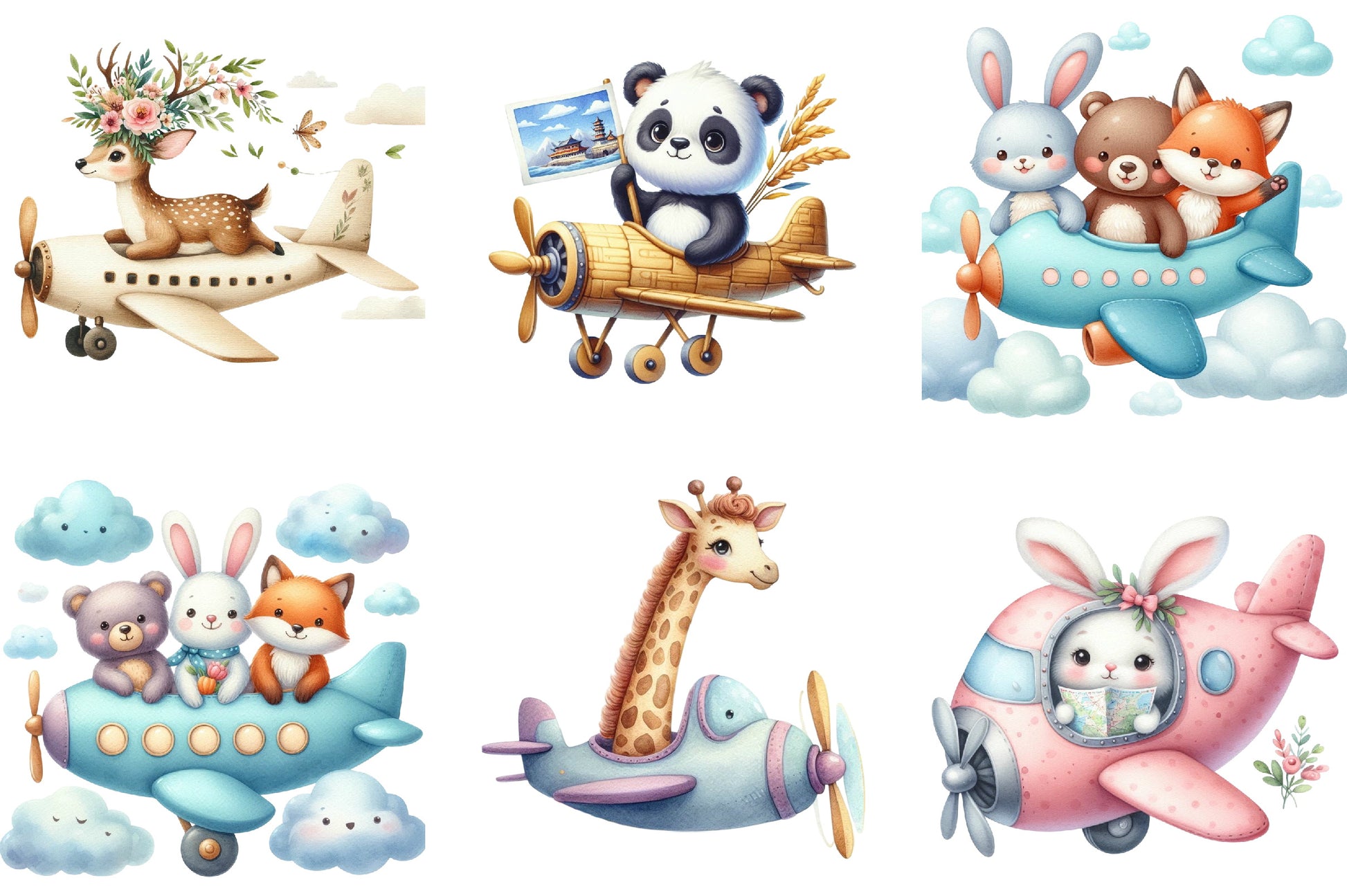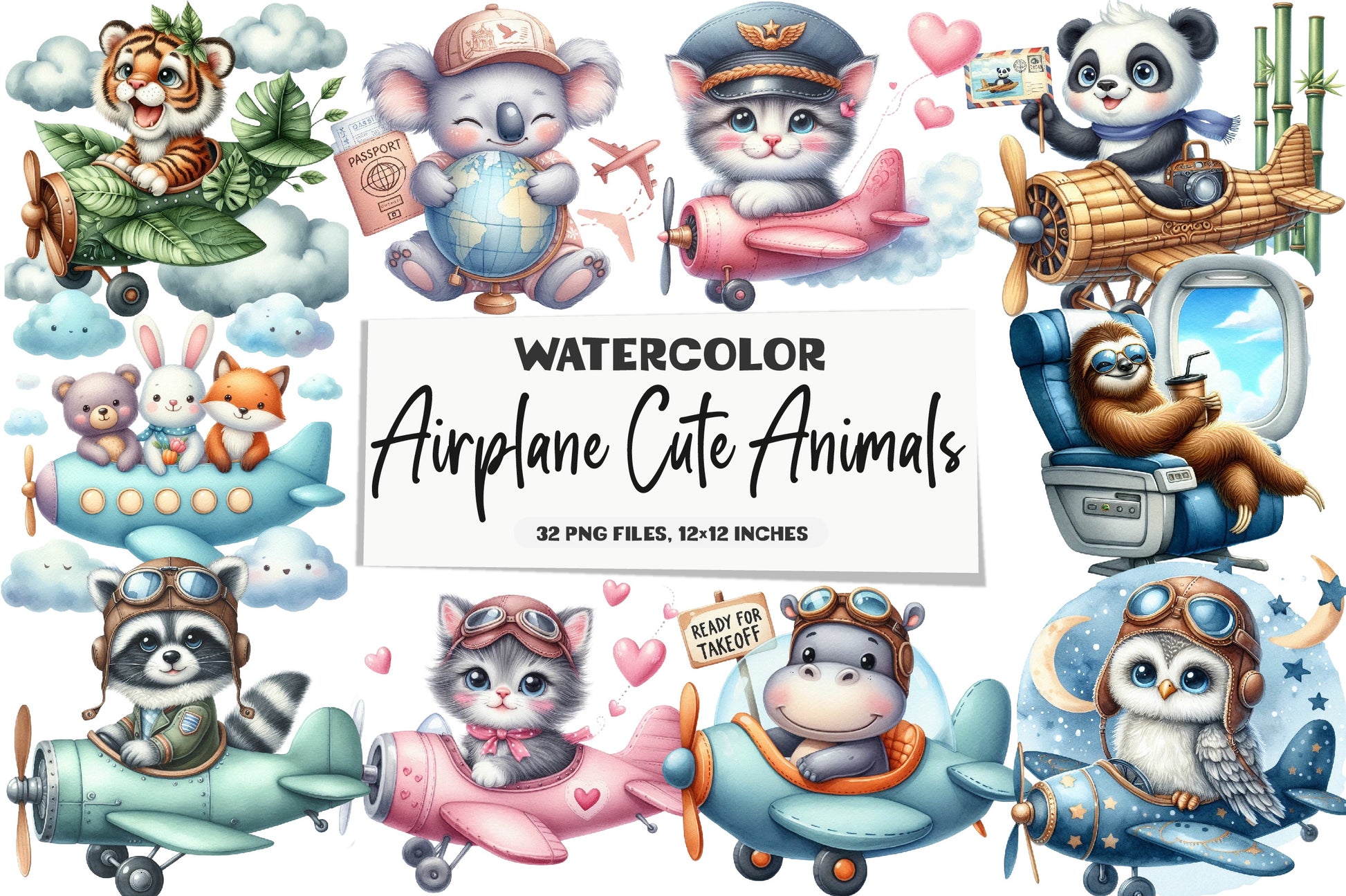 Discover the whimsical world of our Airplane Cute Animals Clipart Bundle, perfect for adding charm to your creative projects. Featuring delightful animal designs soaring through the skies, this collection is ideal for nursery decor, children's party invitations, and playful scrapbooking. Unleash your imagination with these high-quality, versatile illustrations that bring joy and creativity to any craft. Elevate your designs with this enchanting clipart set, perfect for both digital and print projects.