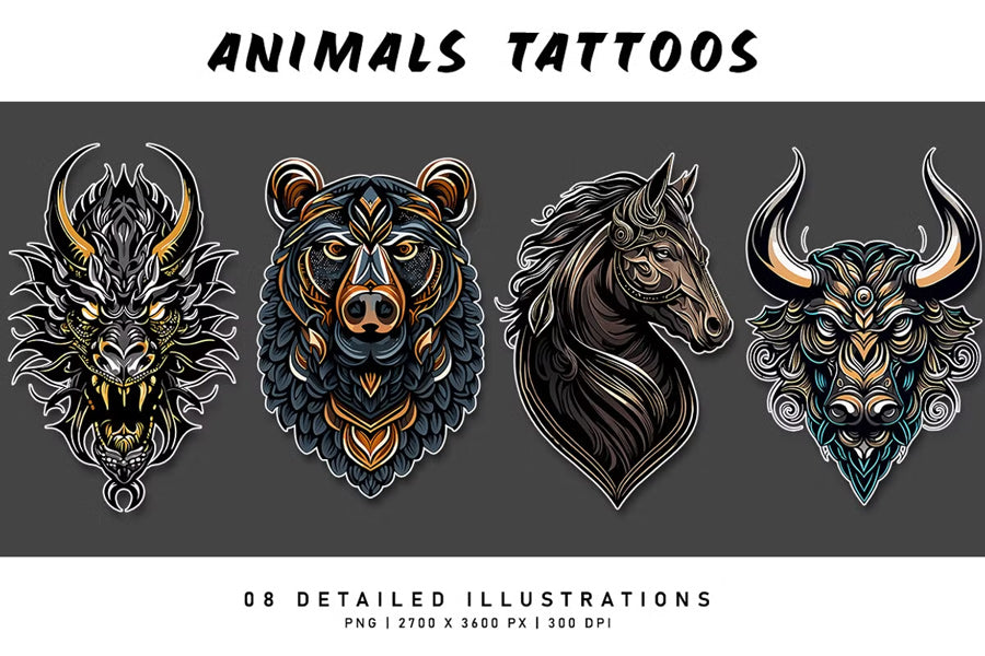 Unleash your wild side with our Animals Tattoos collection, featuring stunning designs of majestic creatures, perfect for animal lovers and creative body art enthusiasts.