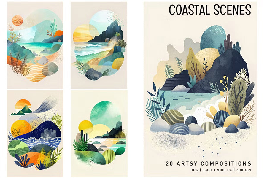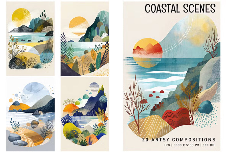 Transform your space with Artsy Coastal Scenes, featuring stunning ocean-inspired designs perfect for beach-themed decor and creative coastal crafts.