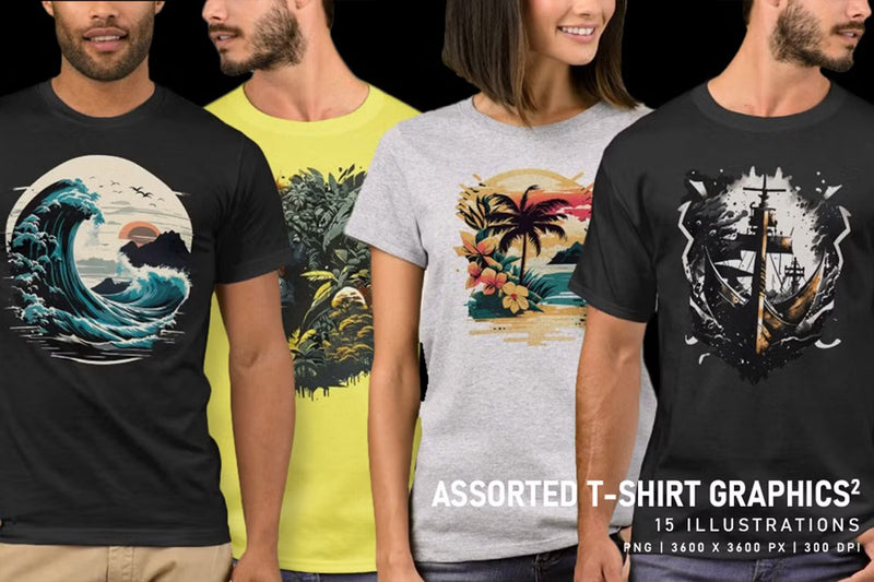 Unleash your style with Assorted T-Shirt Graphics V2 - Funky & Groovy, featuring vibrant and unique designs perfect for any fashion-forward wardrobe. Elevate your look with these eye-catching graphics, ideal for casual outings or making a bold statement.
