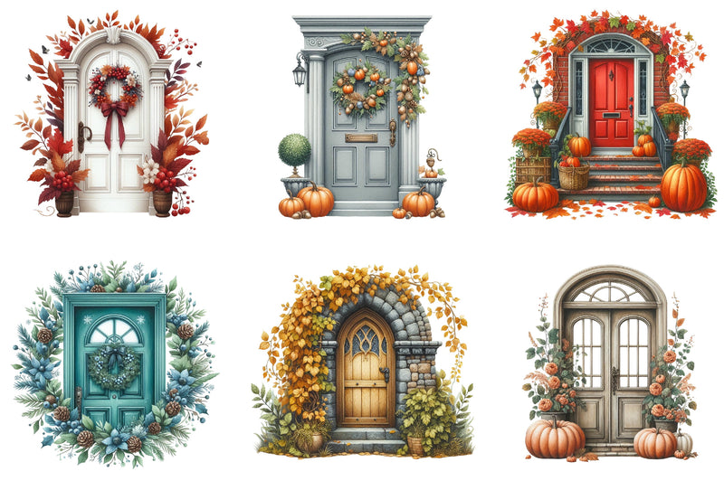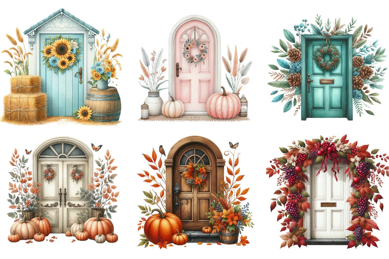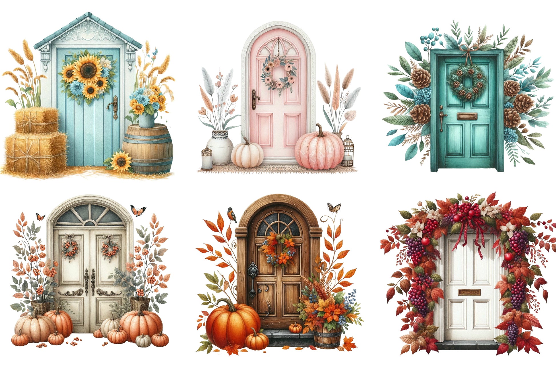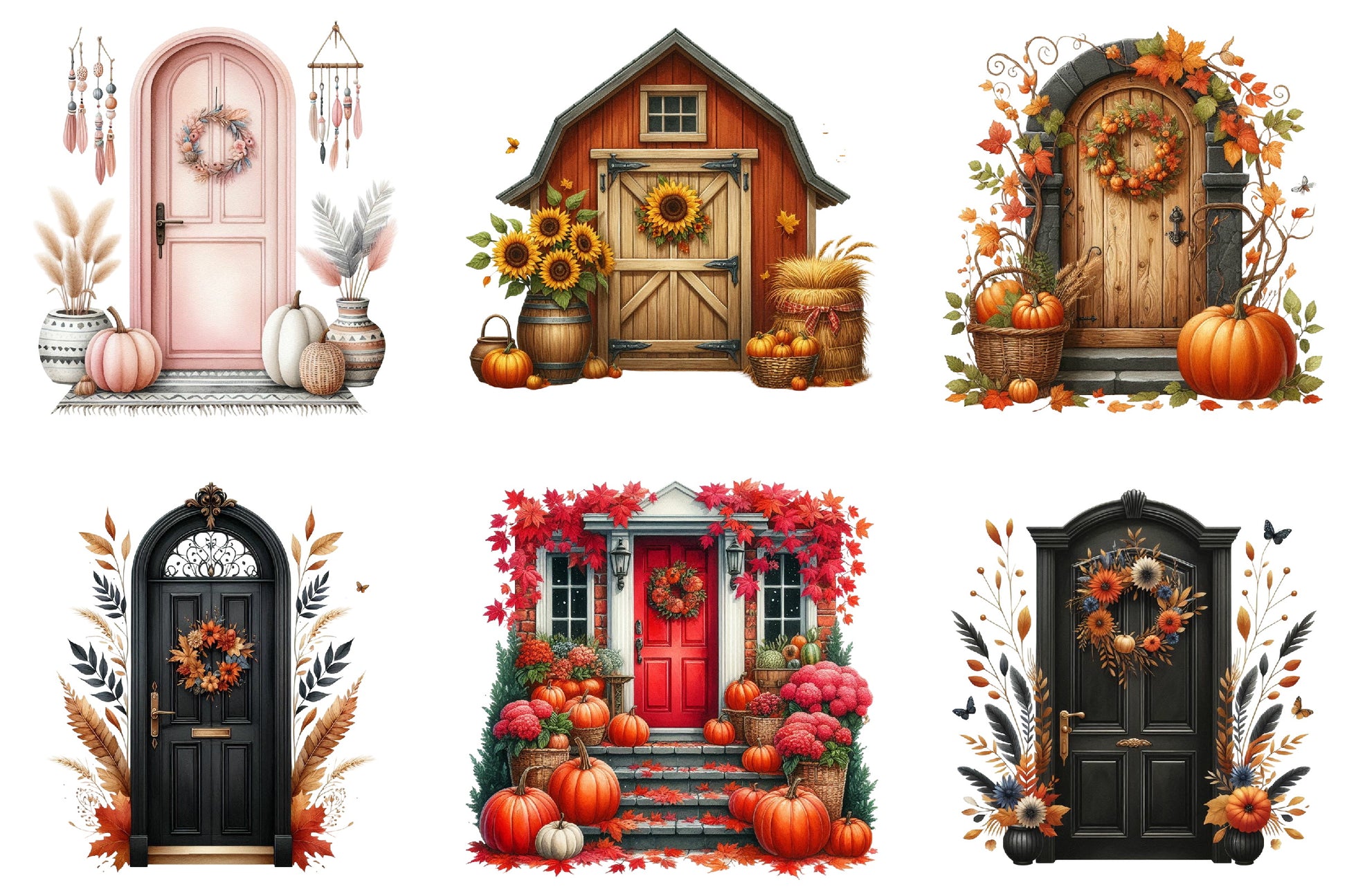 Enhance your seasonal projects with our Autumn Door Clipart Bundle, featuring a charming collection of fall-themed designs perfect for cozy home decor and festive crafts.