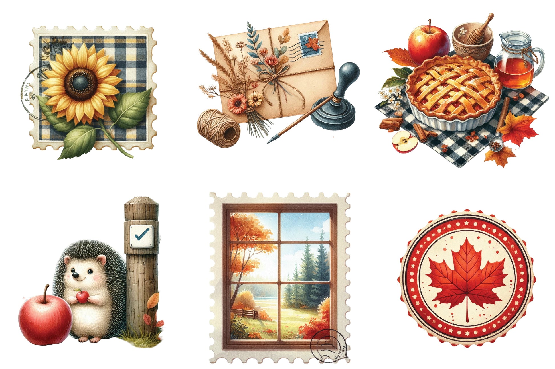 Autumn Fall Postage Stamp Clipart Bundle