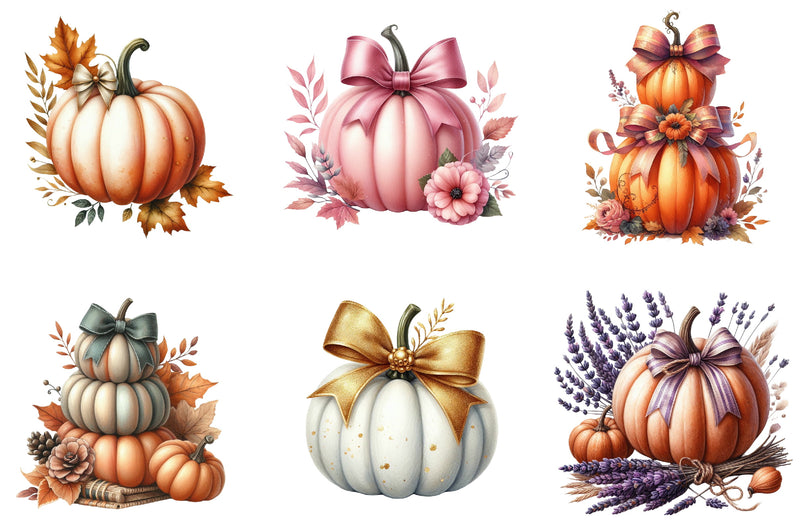 Autumn Pumpkin & Bow Clipart Bundle