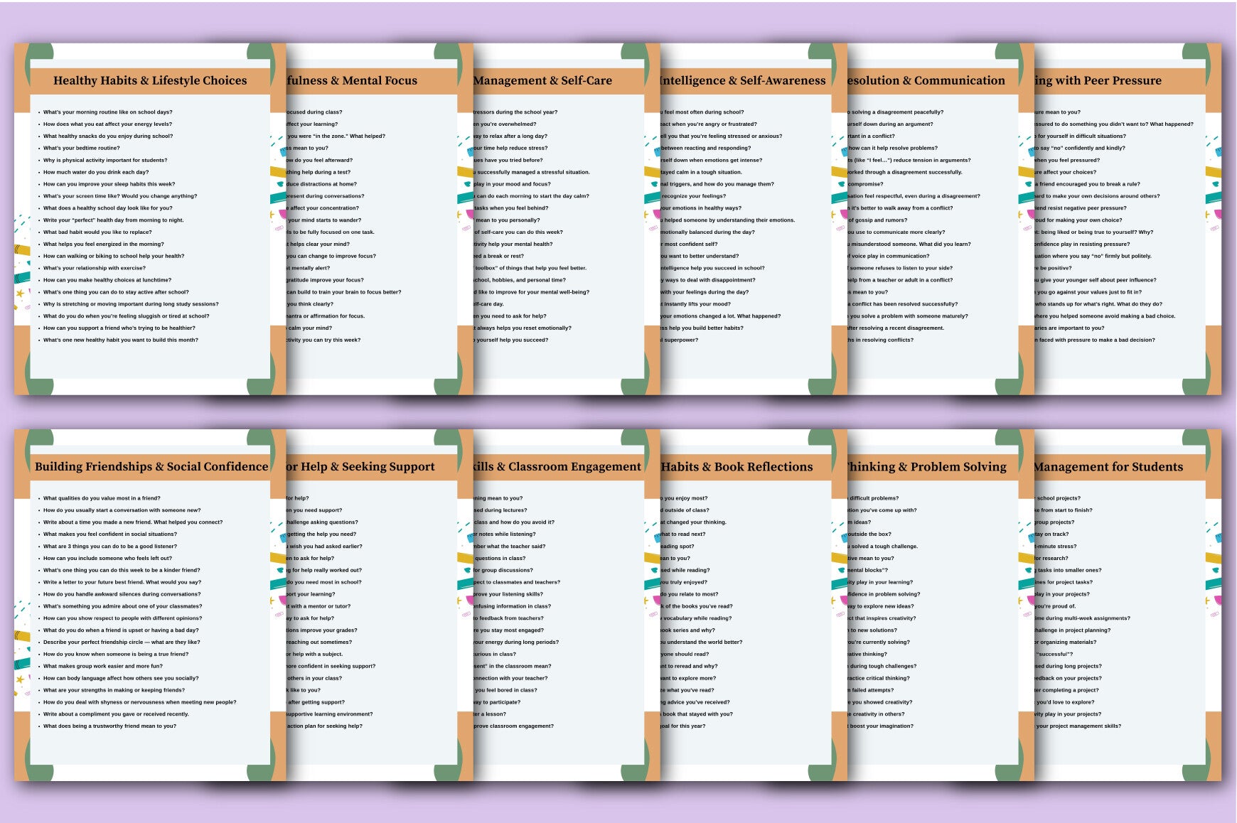 Unlock creativity with our Back to School Success Prompts, designed to inspire and motivate students for a productive academic year. Perfect for enhancing study habits and boosting confidence, these prompts are a must-have for every student's toolkit.