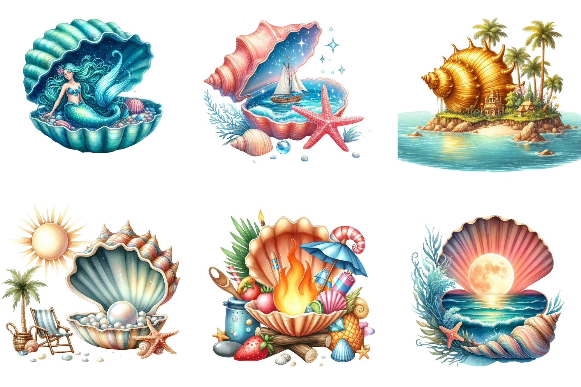 Beach Paradise Seashell Clipart Bundle