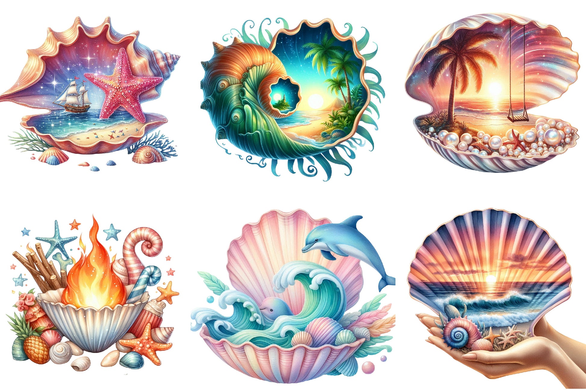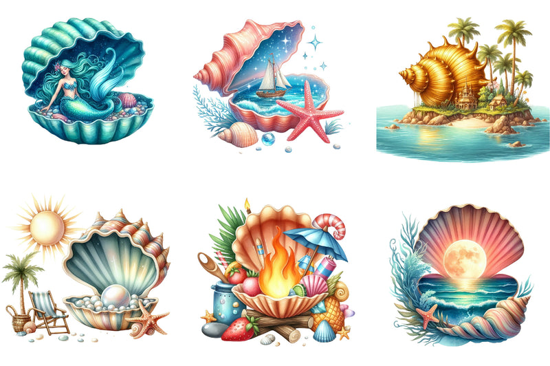 Unleash your imagination with our Seashell Clipart Bundle, offering a variety of beach-themed designs to inspire your next artistic endeavor.