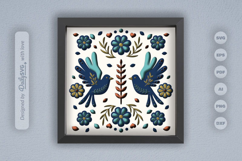 Enhance your creative projects with the Bird Floral Folk Art Papercut SVG Bundle, featuring intricate bird and floral designs perfect for unique home decor, personalized gifts, and artistic crafts.