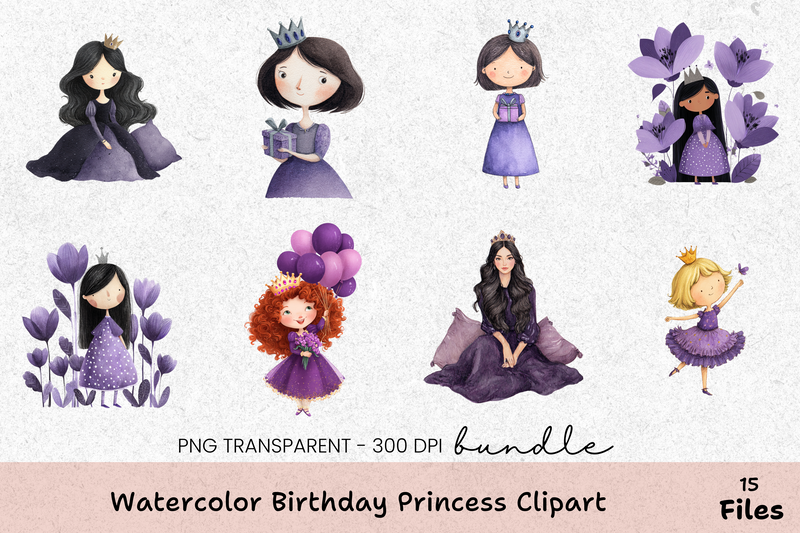 Unleash creativity with our Birthday Princess Clipart Bundle, featuring charming princess designs perfect for magical birthday crafts and decorations.