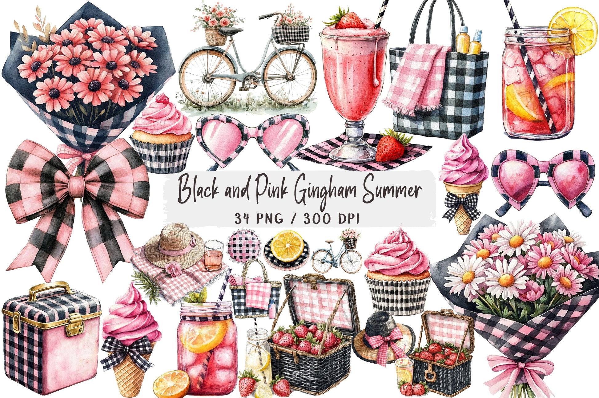 Enhance your creative projects with our Black and Pink Gingham Summer Clipart Bundle. Perfect for scrapbooking, invitations, and digital designs, this collection offers a charming mix of classic gingham patterns in trendy black and pink hues. Ideal for summer-themed crafts, these high-quality graphics bring a touch of elegance and fun to any project. Unleash your creativity with this versatile clipart set, perfect for DIY enthusiasts and professional designers alike.
