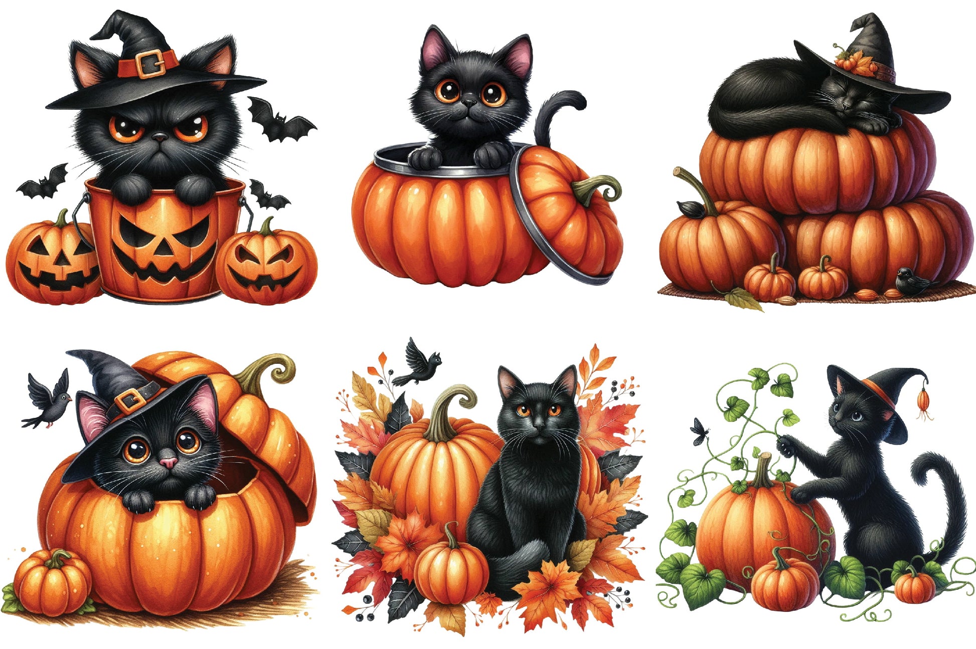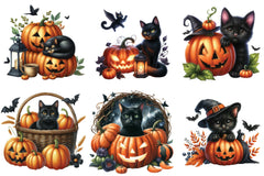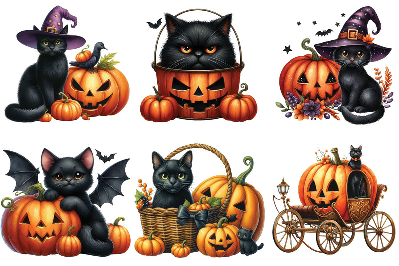 Black Cat and Pumpkin Halloween Clipart Bundle