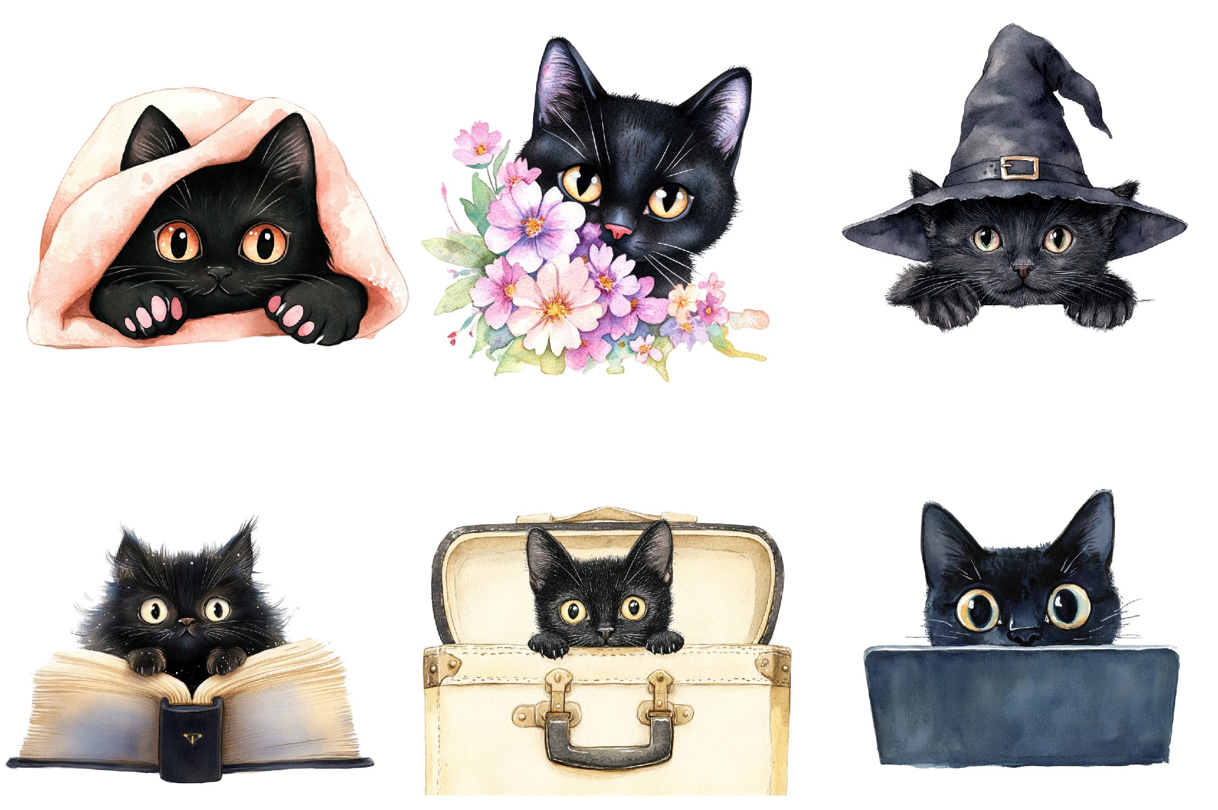 Unleash creativity with our Black Cat Peeking Clipart Bundle, perfect for Halloween crafts, spooky invitations, and enchanting digital projects. This versatile collection features charming black cat designs, ideal for adding a touch of mystery to your artwork. Perfect for DIY enthusiasts and professional designers alike, these high-quality images are ready to enhance your creative projects. Dive into the world of magic and mystery with our unique clipart set today!