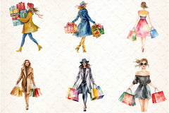 Black Friday Woman Shopping Clipart Bundle