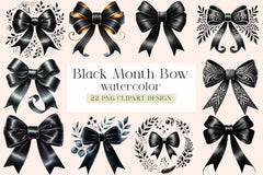 Explore the beauty of our Black Month Bow Clipart Bundle, designed to inspire and elevate your artistic projects. Perfect for graphic designers and hobbyists alike, these bows are your go-to resource for unique and stylish designs.