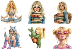 Blonde Quirky Girl Clipart Bundle