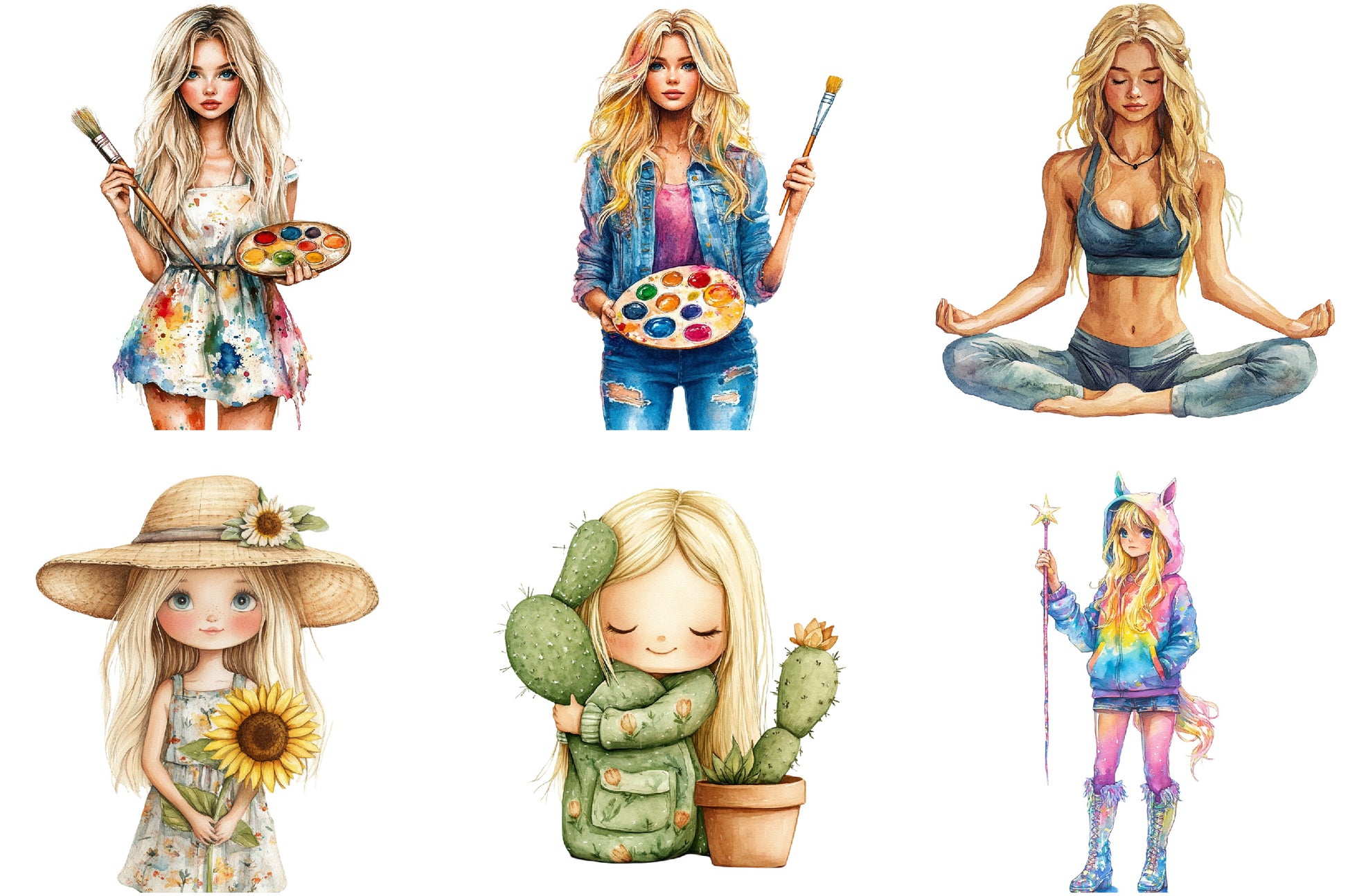 Unleash creativity with the Blonde Quirky Girl Clipart Bundle, featuring whimsical and charming designs perfect for personalized projects. Ideal for scrapbooking, invitations, and digital crafts, this collection adds a playful touch to any creation. Explore endless possibilities with these unique illustrations, designed to captivate and inspire. Perfect for DIY enthusiasts and professional designers alike, this bundle is your go-to resource for adding a quirky flair to your work.