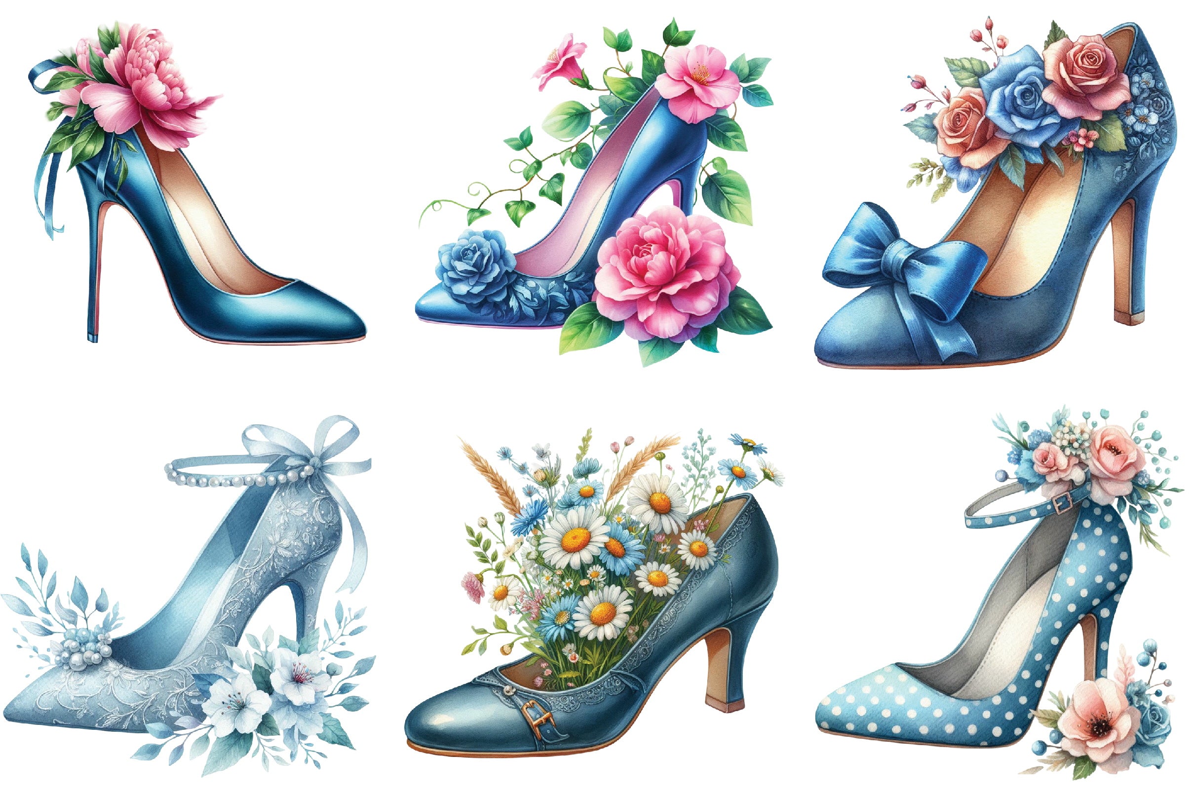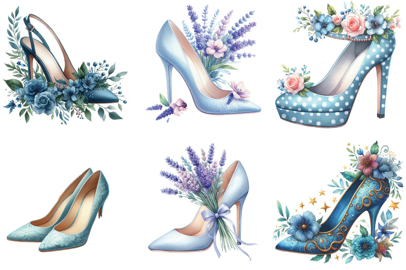 Blue High Heels with Floral Clipart Bundle