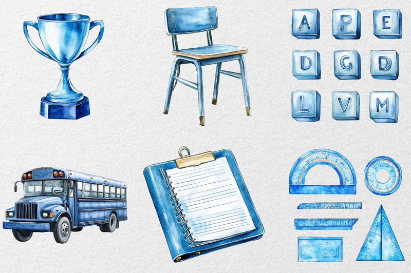Enhance your educational projects with our Blue School Clipart Bundle, featuring vibrant and versatile designs perfect for classroom decor, lesson plans, and creative activities. Ideal for teachers and students alike, this bundle offers a wide array of school-themed illustrations to inspire learning and creativity. Transform your educational materials with these eye-catching graphics, perfect for presentations, worksheets, and more. Discover the endless possibilities with our Blue School Clipart Bundle today!