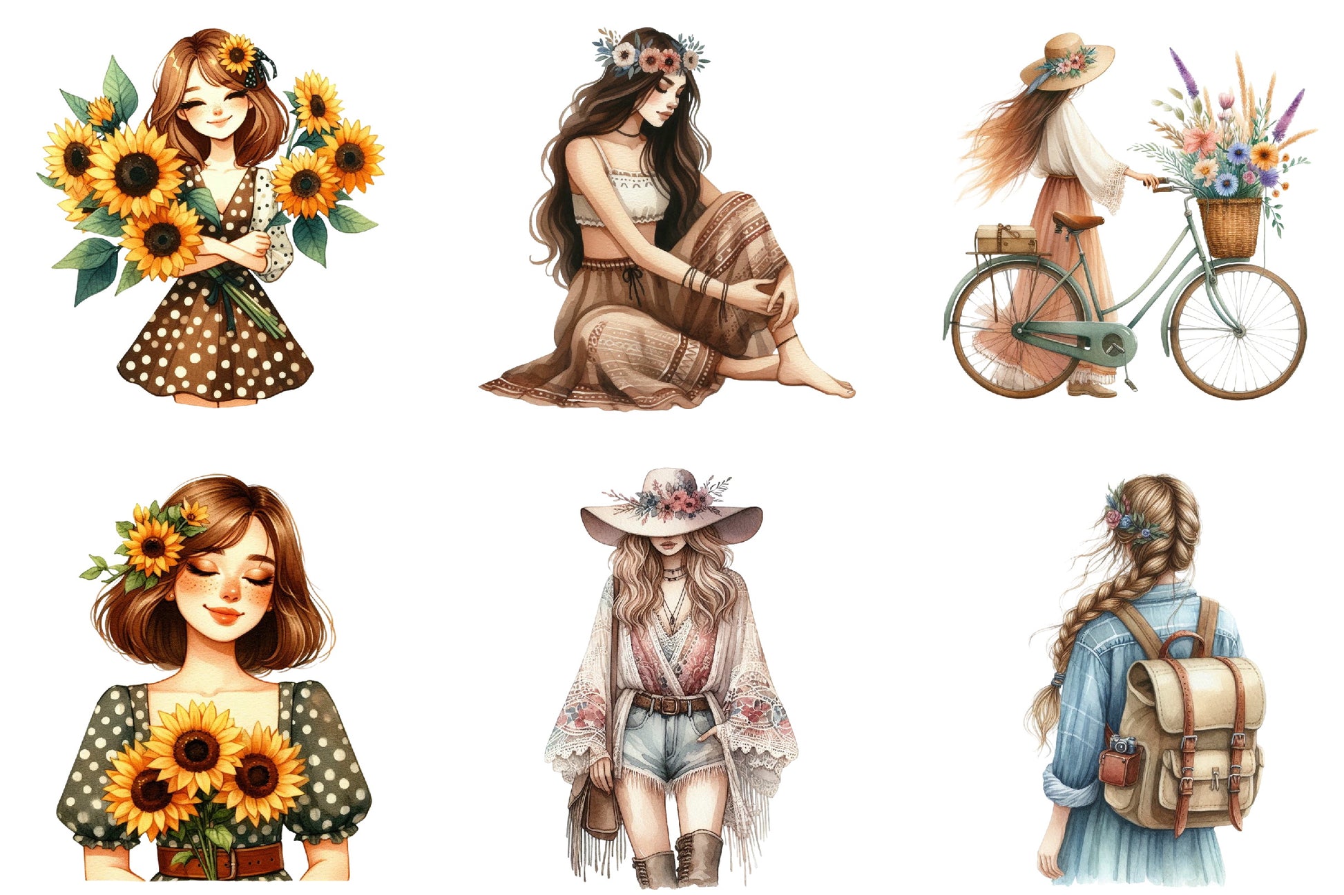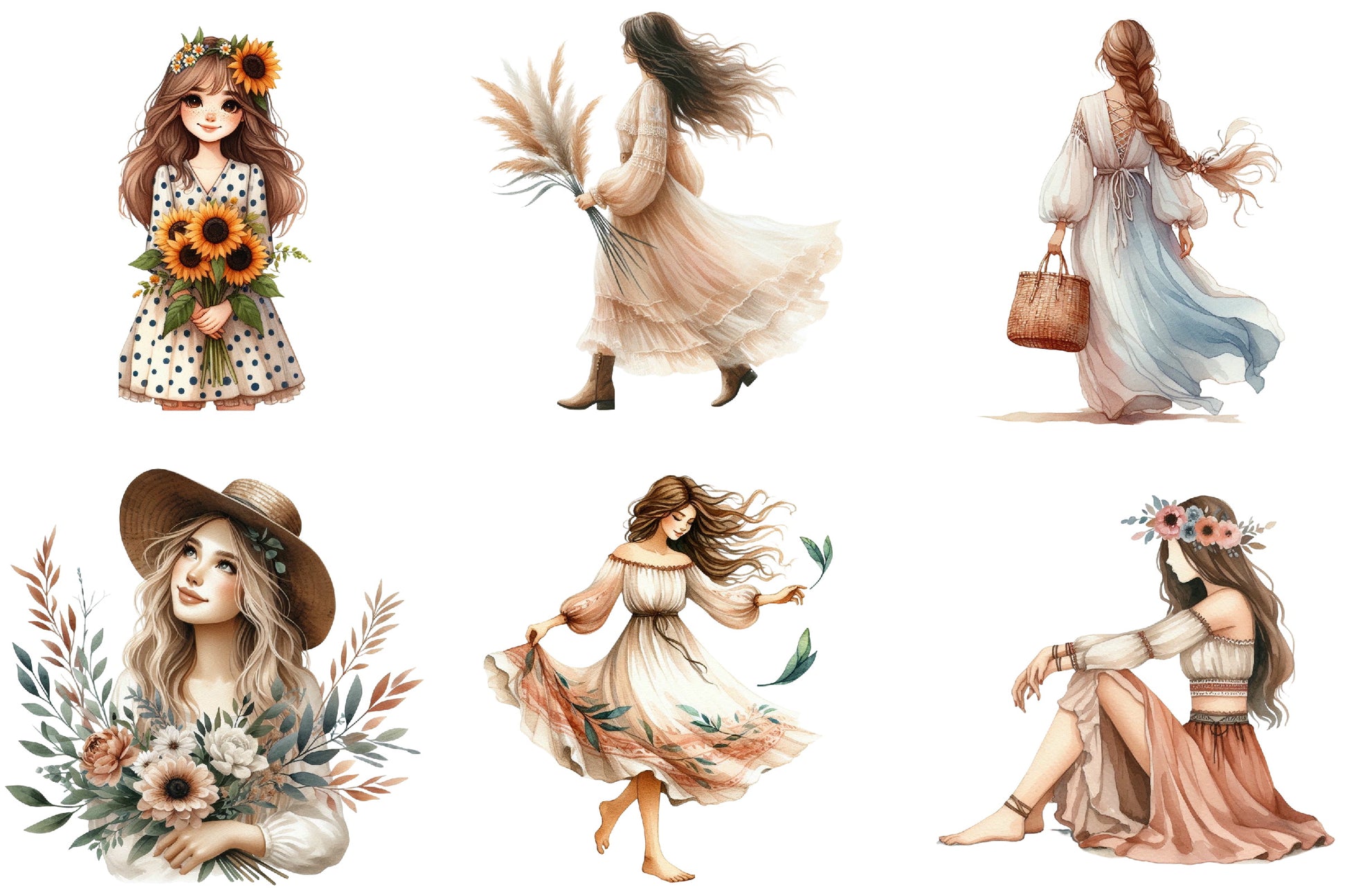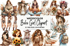 Unleash your creativity with the Boho Girl Clipart Bundle, featuring whimsical bohemian designs perfect for personalized crafts, invitations, and digital projects. This enchanting collection offers a variety of charming illustrations, ideal for adding a touch of boho magic to your creations. Perfect for DIY enthusiasts and professional designers alike, this bundle is your go-to resource for unique and stylish artwork.