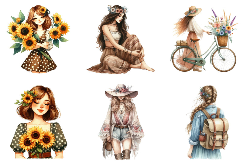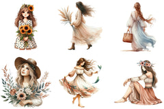 Boho Girl Clipart Bundle