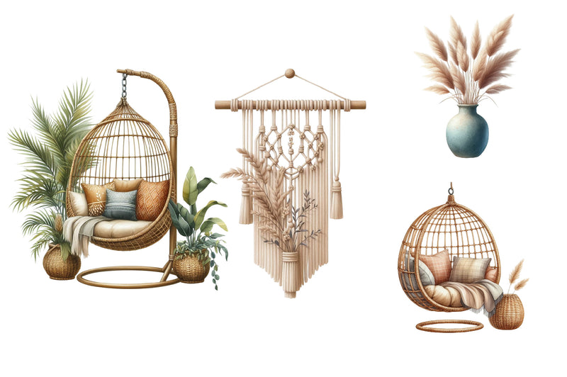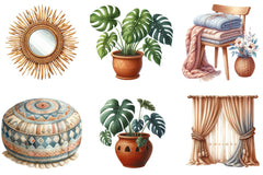 Transform your space with our Boho Home Decor Clipart Bundle, featuring a stunning collection of bohemian-inspired designs perfect for creative projects and unique home accents.