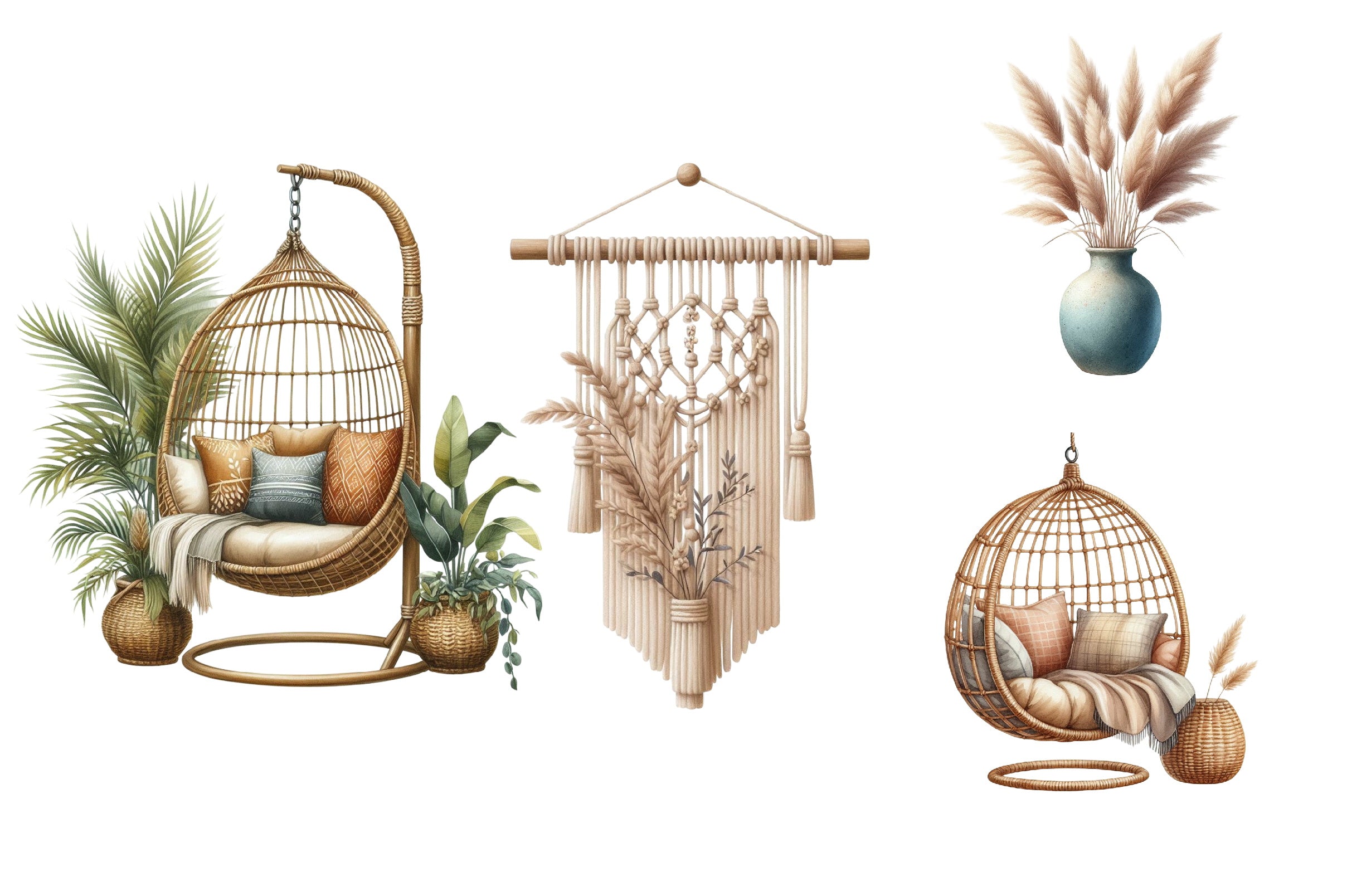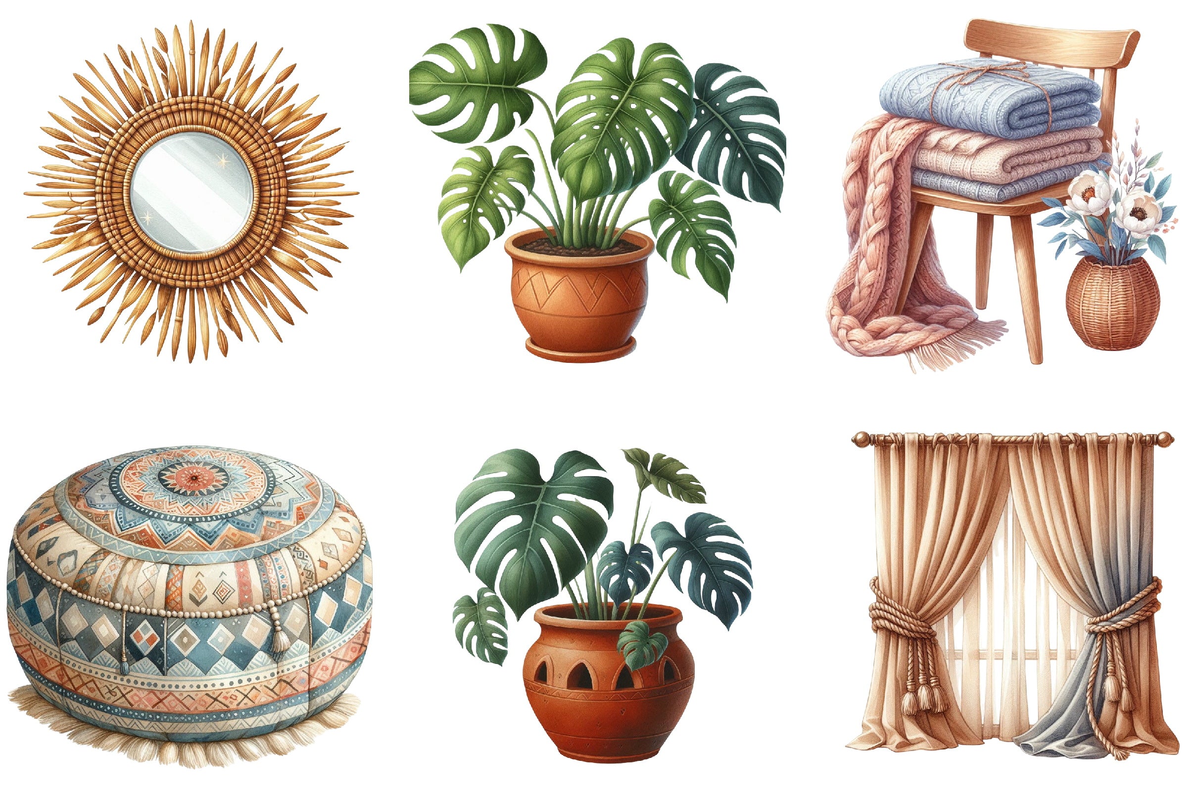 Discover endless possibilities with our Boho Home Decor Clipart Bundle, perfect for adding a touch of whimsy and elegance to any room.