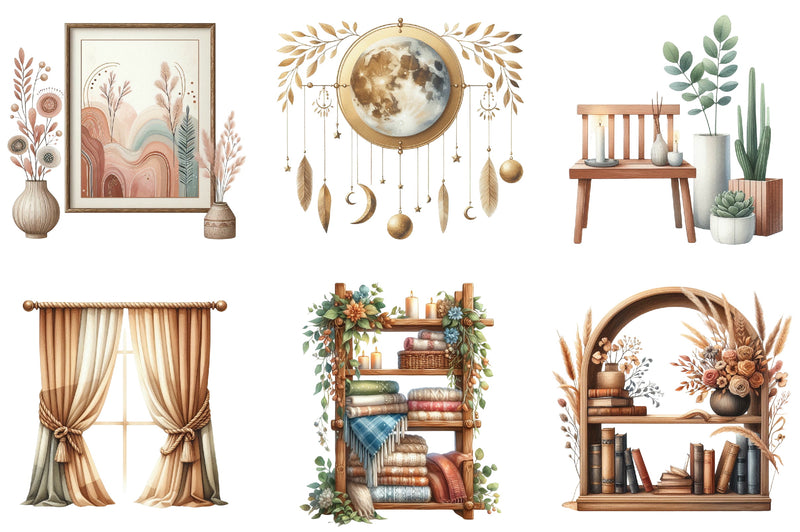 Boho Home Decor Clipart Bundle