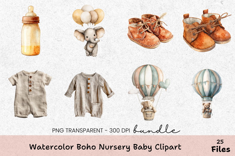 Transform your nursery with our Boho Nursery Baby Clipart Bundle, featuring charming bohemian designs perfect for creating whimsical baby room decor.