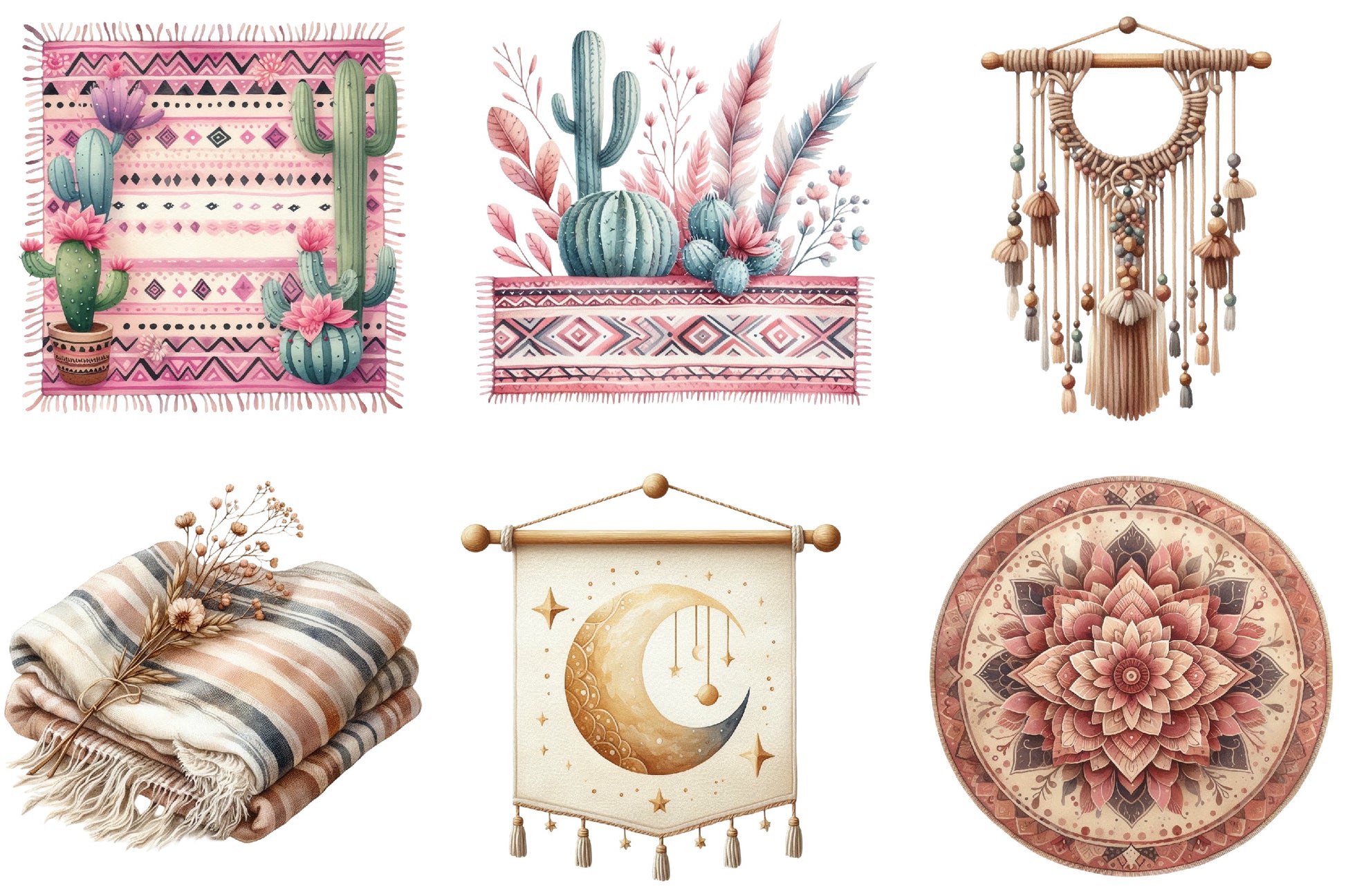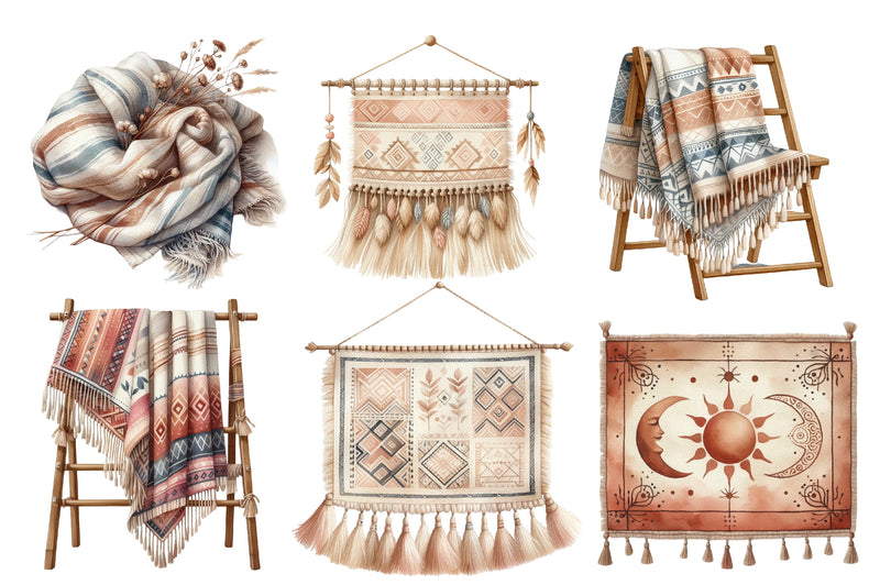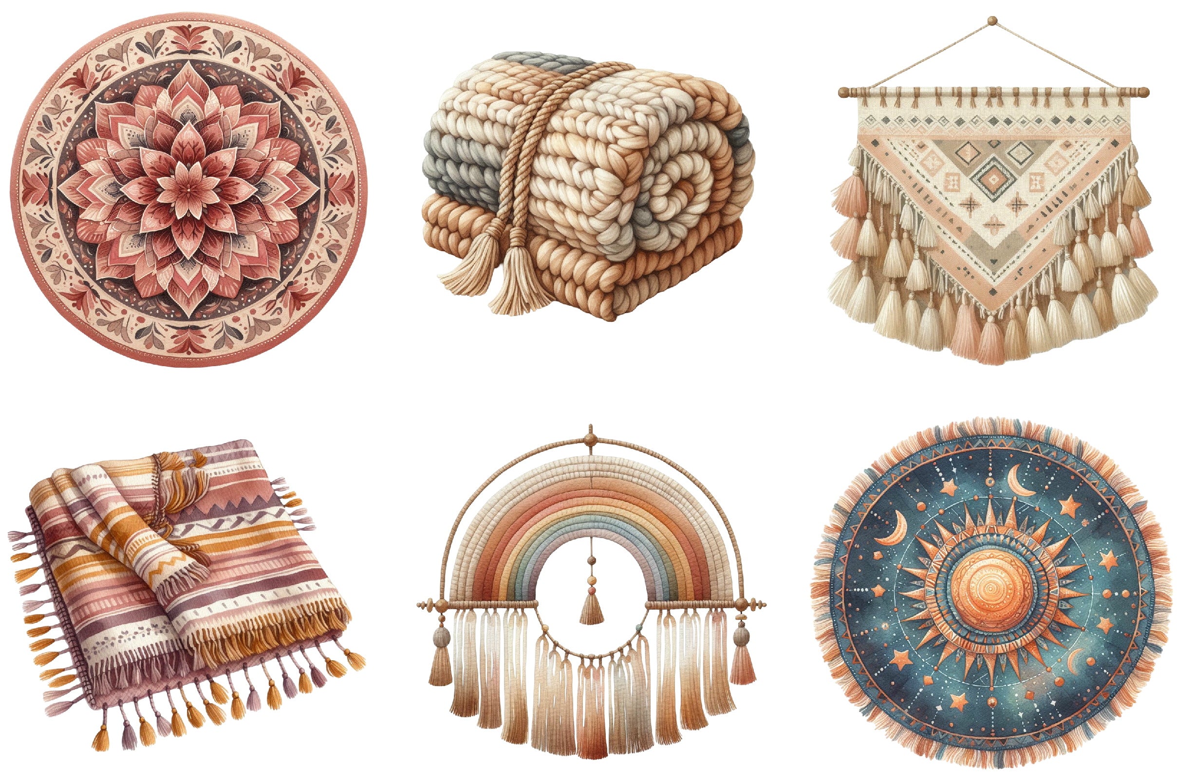 Transform your space with the Boho Tapestry & Blanket Clipart Bundle, featuring stunning bohemian designs perfect for creative home decor projects. Ideal for crafting unique tapestries, blankets, and more, this versatile collection brings a touch of boho charm to any room. Elevate your DIY projects with these high-quality, artistic clipart elements, designed to inspire and captivate. Perfect for artists, crafters, and boho enthusiasts looking to add a personalized touch to their creations.