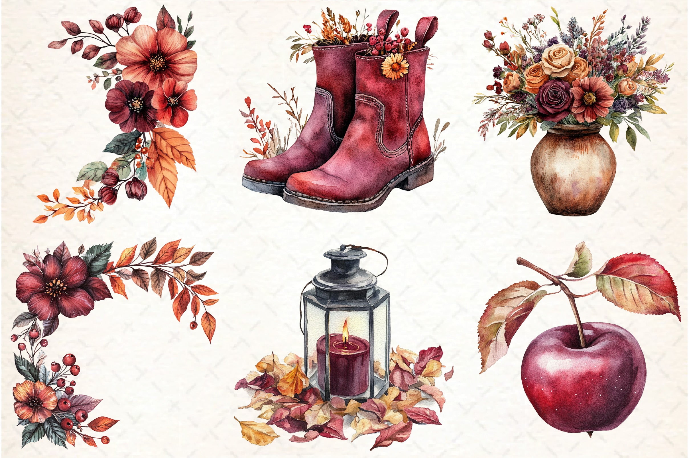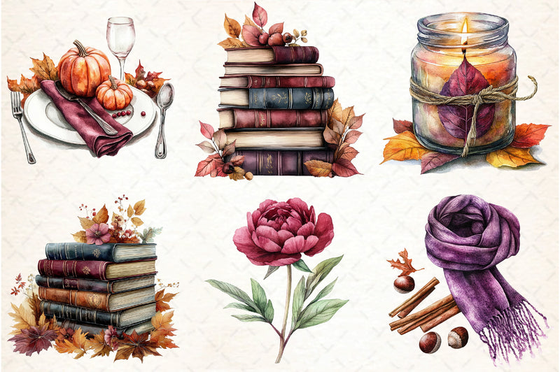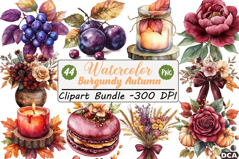 Burgundy Autumn Clipart Bundle