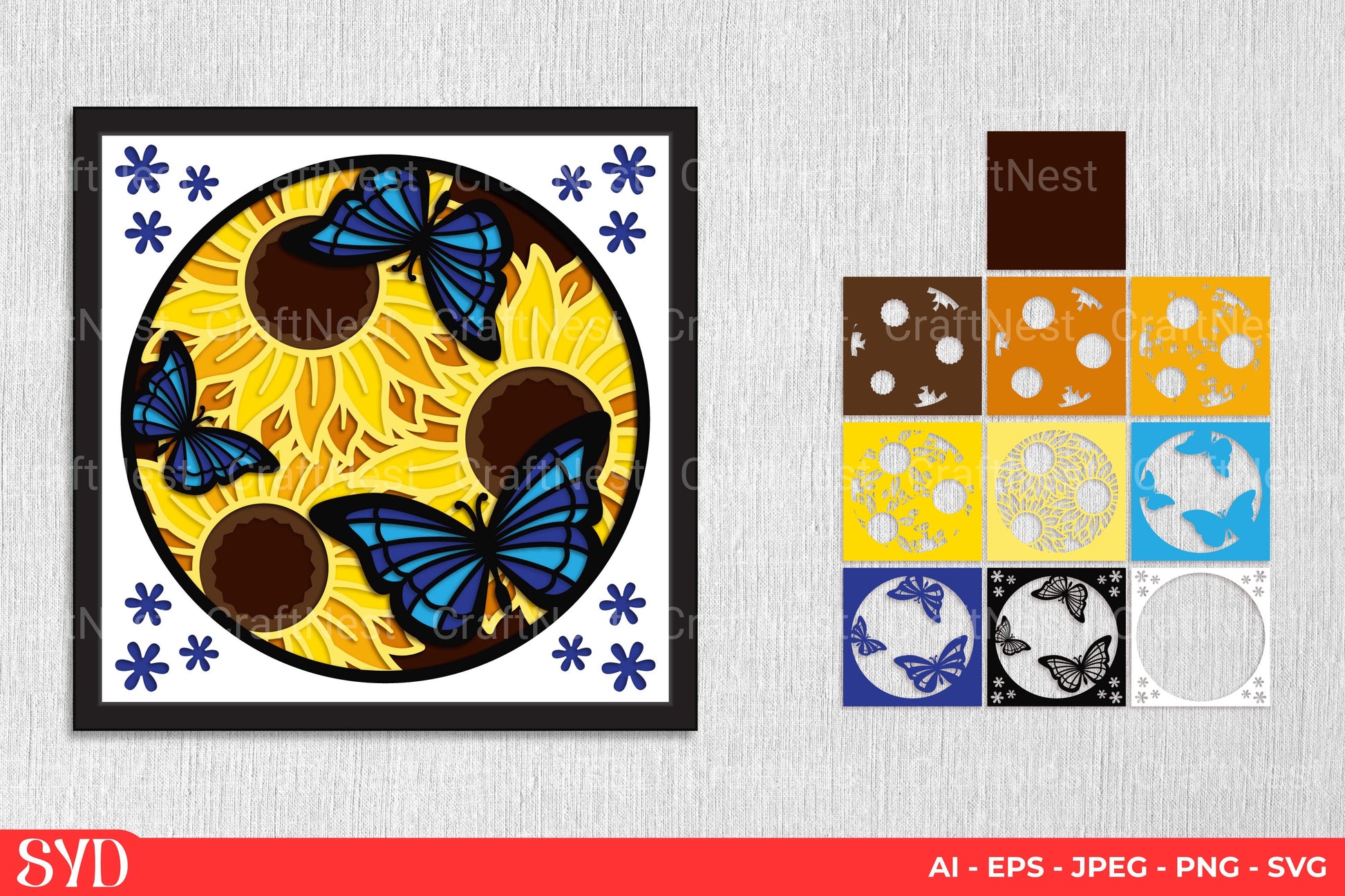 Transform your crafts with the Butterfly and Sunflower 3D Layered Papercut Clipart Bundle, featuring intricate designs perfect for adding a touch of nature's elegance to your projects. Ideal for scrapbooking, card making, and home decor, this versatile bundle offers endless creative possibilities. Elevate your DIY crafts with these stunning, easy-to-use papercut templates, designed to captivate and inspire. Perfect for both beginners and seasoned crafters, this collection brings the beauty of butterflies and sunflowers to life in exquisite detail.