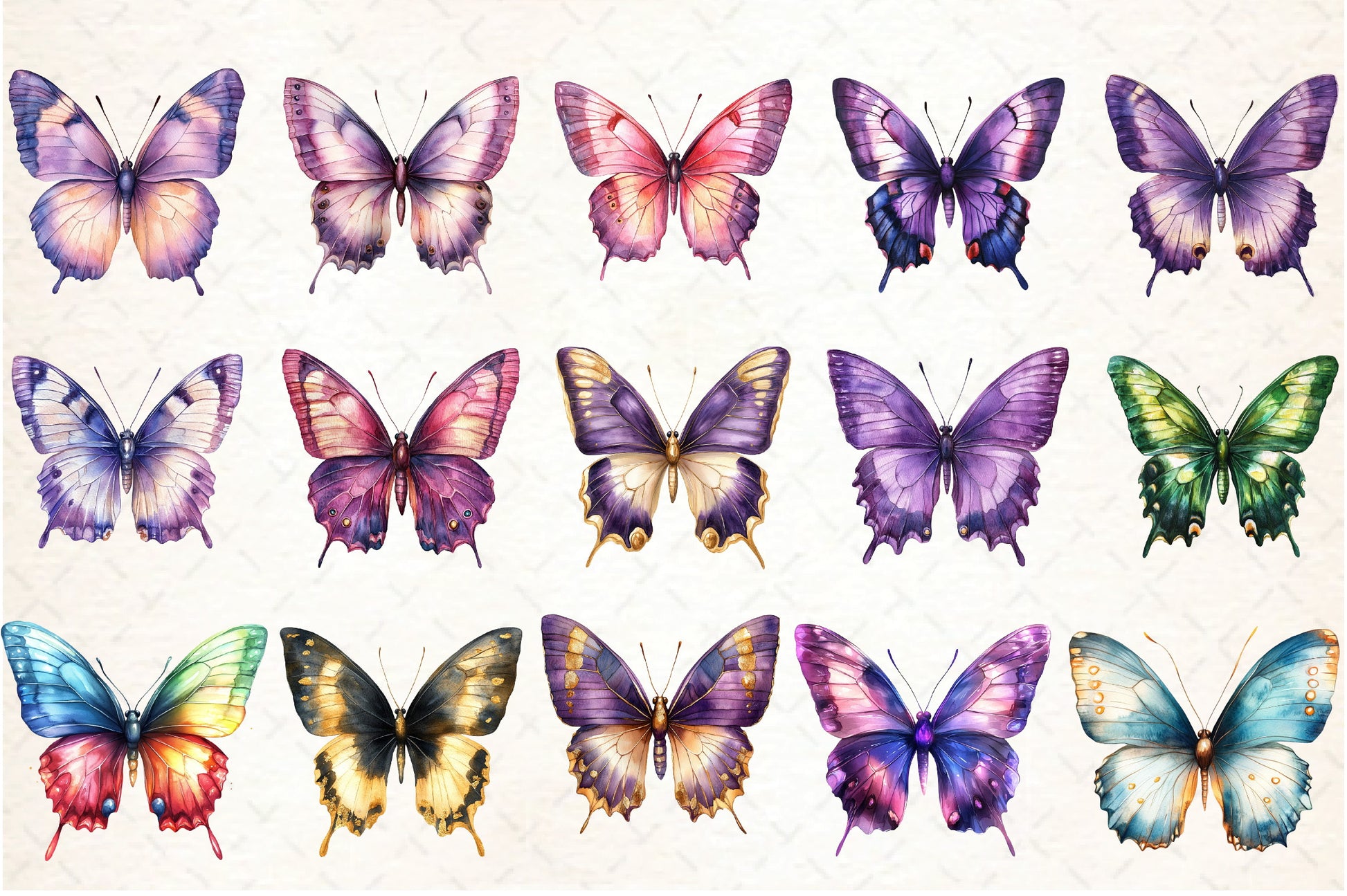 Transform your creations with this exquisite Butterfly Clipart Bundle, offering a diverse range of colorful and detailed butterfly illustrations for all your artistic needs.