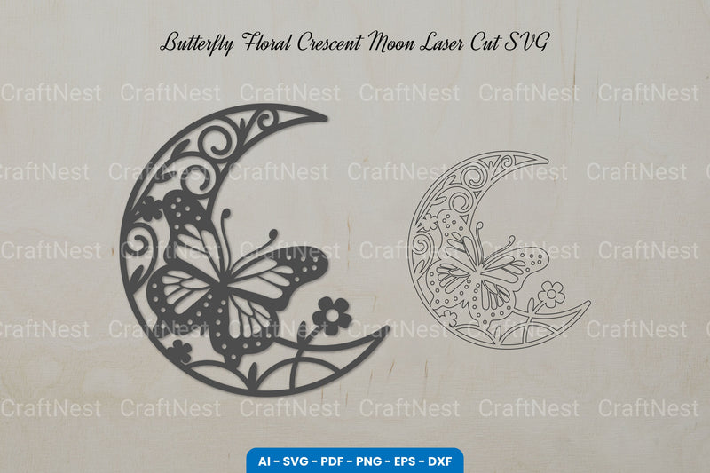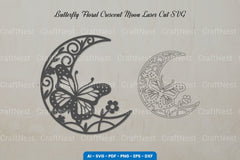 Butterfly Floral Crescent Moon Laser Cut SVG Clipart Bundle