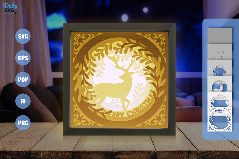 Illuminate your holiday crafts with the Christmas Deer White Papercut Shadow Box SVG Bundle. Featuring intricate deer designs, this bundle is perfect for creating enchanting festive decorations and unique gifts.