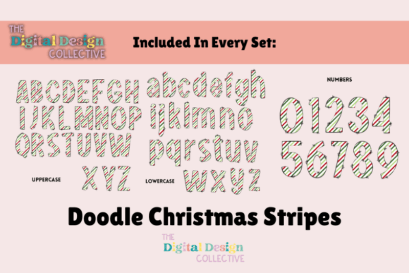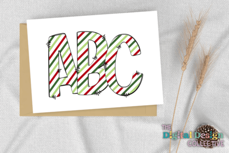 Enhance your holiday projects with the Christmas Stripes Doodle Letters AlphaClipart Bundle, featuring festive striped alphabet designs perfect for seasonal crafts, greeting cards, and digital scrapbooking.