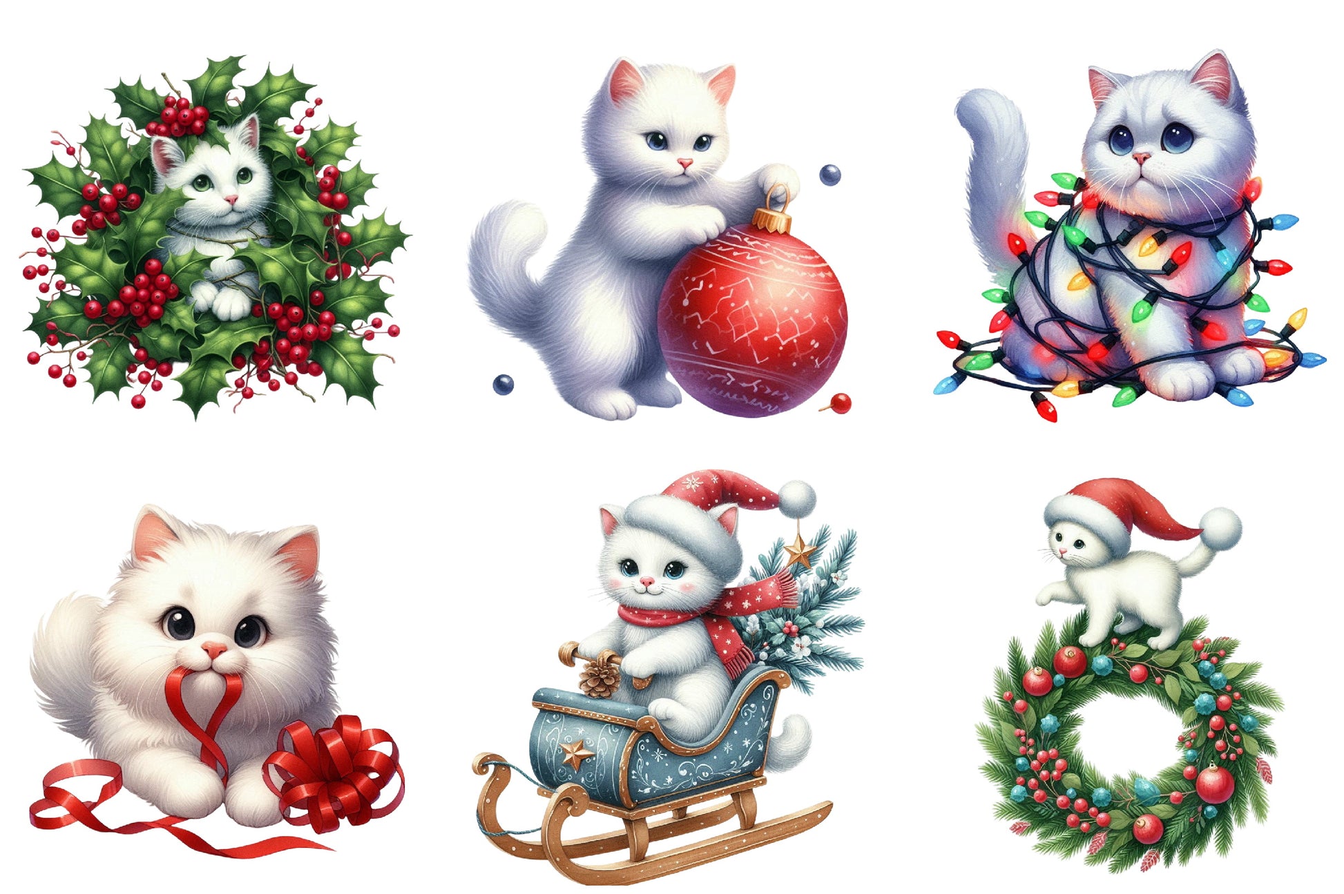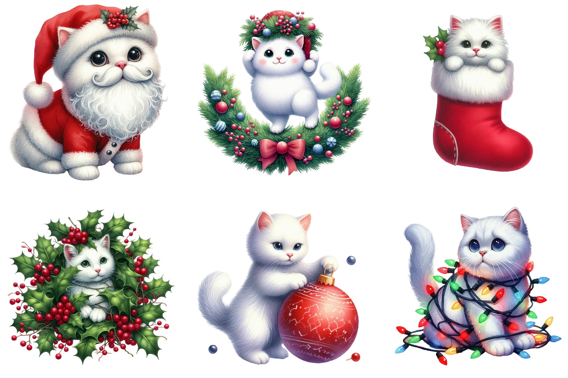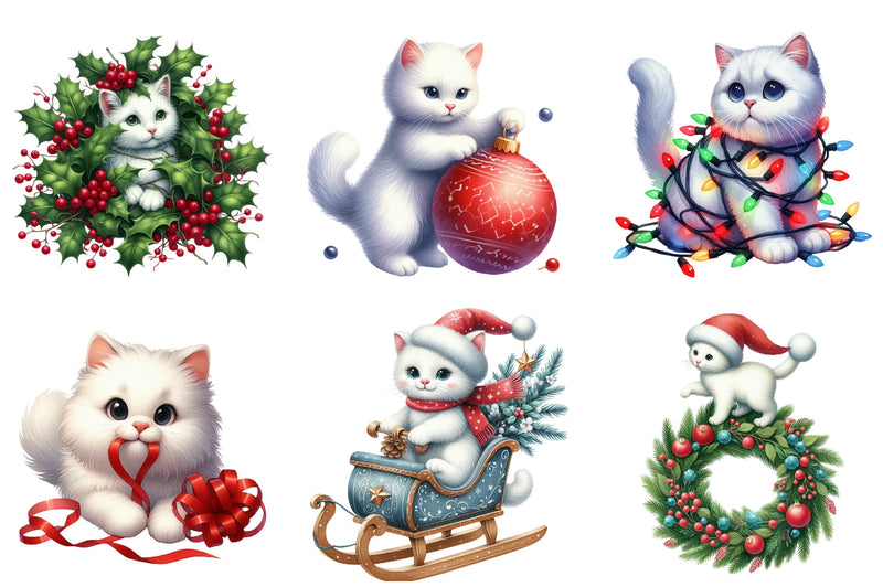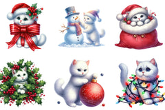 Christmas White Cat Funny Clipart Bundle