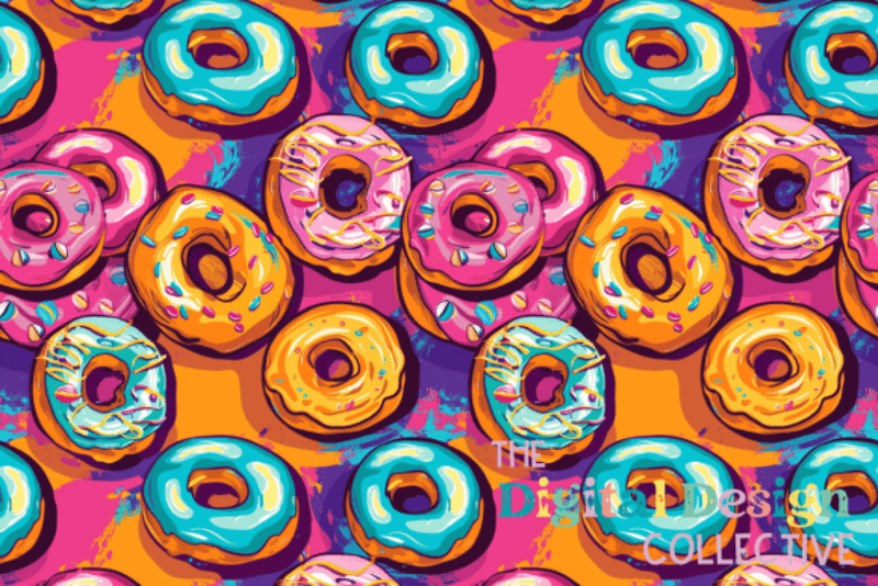 Enhance your creative projects with our Vibrant Sprinkled Donuts Seamless Patterns, perfect for adding a playful touch to digital designs, crafts, and textiles. These colorful donut patterns are ideal for creating eye-catching backgrounds, invitations, and more.