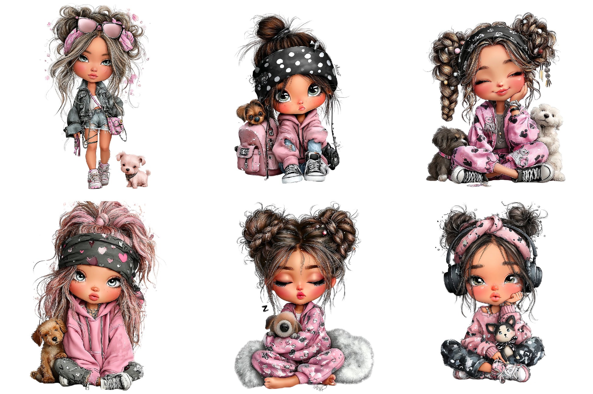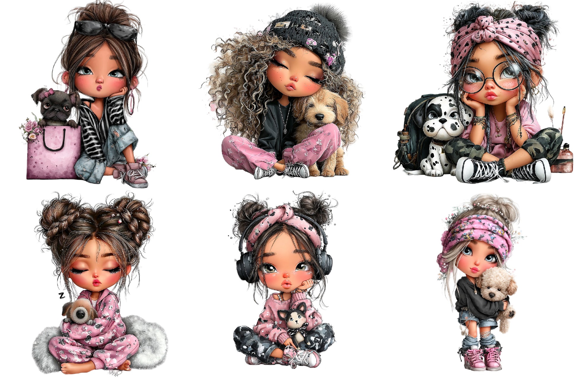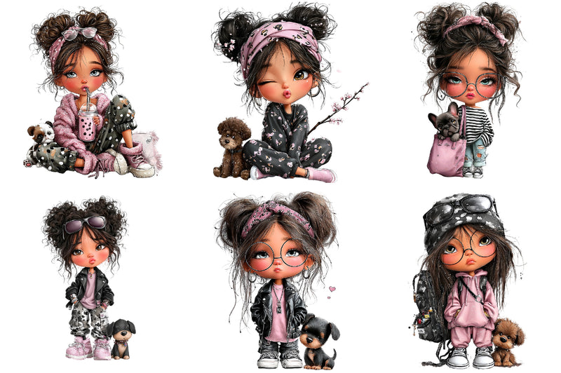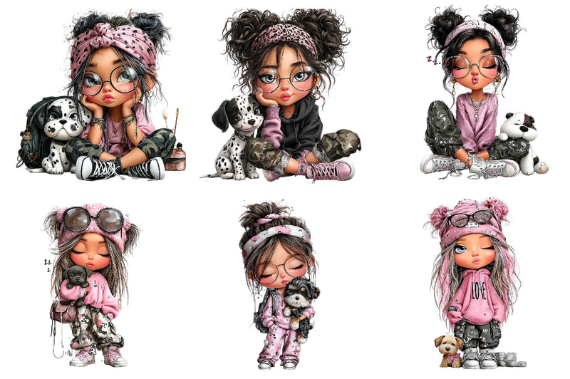 Cool Girl with Puppy Clipart Bundle