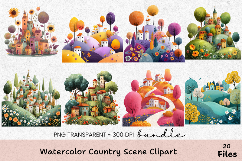 Explore the charm of rural life with our Country Scene Clipart Bundle, featuring 396 unique designs. Perfect for crafting, scrapbooking, and digital projects, these high-quality illustrations capture the essence of the countryside. Enhance your creative projects with rustic barns, lush landscapes, and quaint farm animals. Ideal for DIY enthusiasts and professional designers alike, this bundle offers endless possibilities for creating captivating visuals. Transform your projects with the timeless beauty of country scenes today!