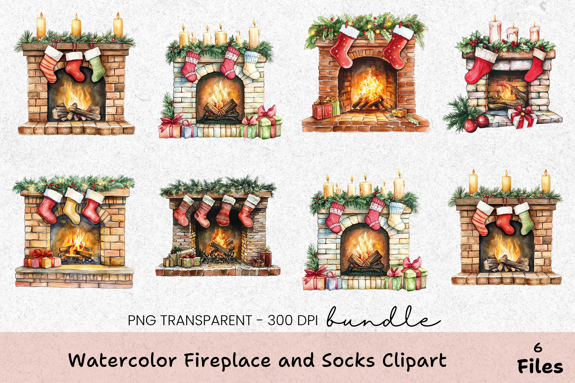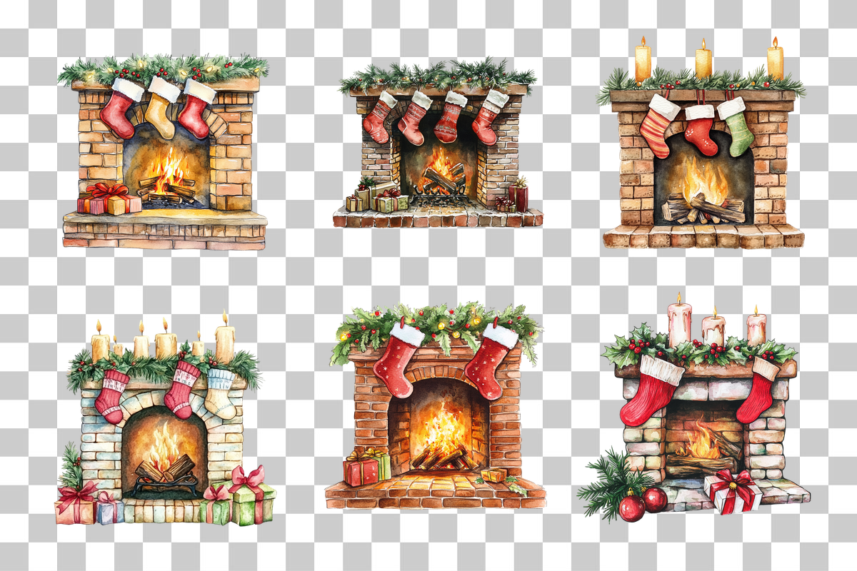 Transform your creative projects with the Cozy Fireplace and Socks Clipart Bundle, featuring charming fireplace scenes and cozy sock designs, perfect for heartwarming holiday crafts and seasonal decor.